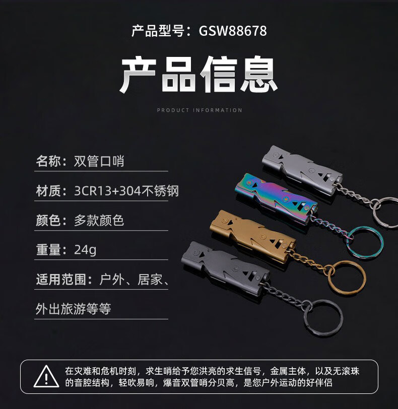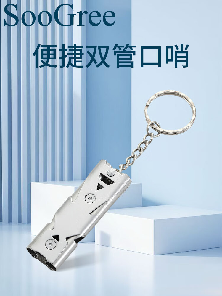 SooGree户外求生哨救生哨高分贝哨不锈钢爆音双管哨音口野外户外求生装备 GSW88678救生哨高分贝哨枪色