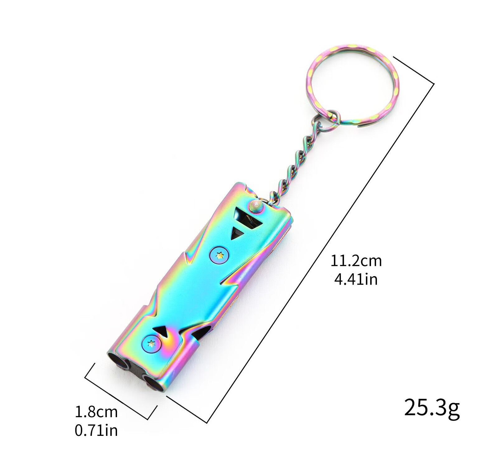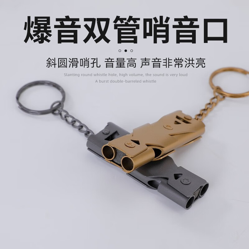 这款户外求生哨真是太棒了!高分贝哨音,不锈钢材质,爆音双管设计,声音洪亮穿透力强,是野外求生和紧急救援的必备装备。枪色外观时尚大气,小巧便携,无论是徒步、露营还是探险,都能让你在紧急情况下迅速发出求救信号,保障自身安全。