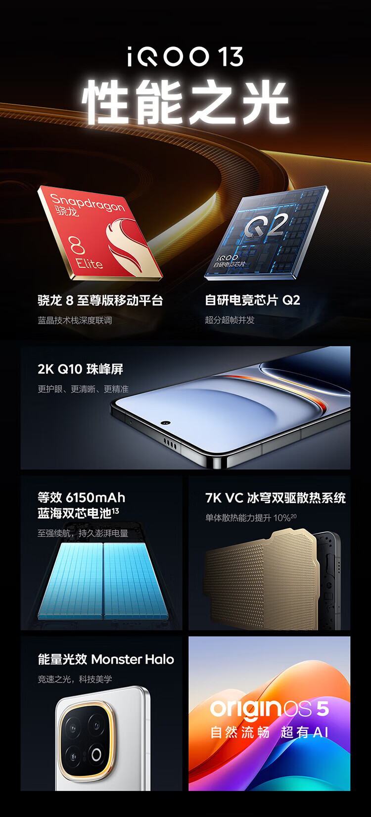 vivo iQOO13骁龙8至尊版自研电竞芯片Q2 2K Q10珠峰屏6150mAh蓝海电池 iQOO13传奇版 16GB+512GB 官方标配+原封未激活+全国联保