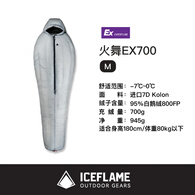 冰焰 ICE FLAME羽绒睡袋火舞木乃伊鹅鸭绒超轻户外旅行露营防寒保暖轻量化多功能 灰白【火舞EX700】M码