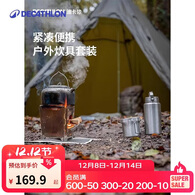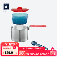 迪卡侬户外锅具便携不锈钢露营野营野外野餐野炊车载全套炊具ODCT 深灰色0.9L - 1人