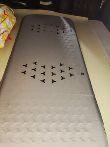 在京东自营买的迪卡侬自充气垫太让人惊喜了!物流一如既往地快,第三天就收到了,包装得很严实,没有任何损坏。 打开阀门就能自动充气,几分钟就搞定,完全不用费力,对露营新手太友好了。充完气厚度足足有3厘米,表面的植绒面料摸起来很柔软,躺在上面支撑性特别好,就算地面有些凸起也完全没感觉,跟家里的床垫一样舒服。 特意测试了一晚,完全没有漏气,早上起来还是鼓鼓的,而且底座有防滑纹理,翻身时也不会移位。户外露营时防潮效果超棒,地面的潮气完全渗不上来,面料还耐脏,用湿布一擦就干净了。 不用的时候折叠起来体积很小,重量也轻,放进收纳包就能轻松带走,自驾、露营都很方便。中午放车上睡午觉也是牛逼的很!加上迪卡侬的质保服务和京东的靠谱售后,买得特别放心。强烈推荐给爱户外的朋友!