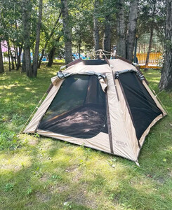 质量很好,材料、配件、做工都不错。搭建也太轻松了,我一个人几分钟就搞定,收纳同样便捷,对我这种手残党超友好。帐篷四面都有网纱能通风、还能防蚊虫,也可以直接拉上会更私密一些。