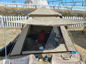 帐篷非常棒。海边搭个帐篷吹个海风很惬意,就是地钉太短了,用在沙滩不太合适,不过也顺利搭起来了