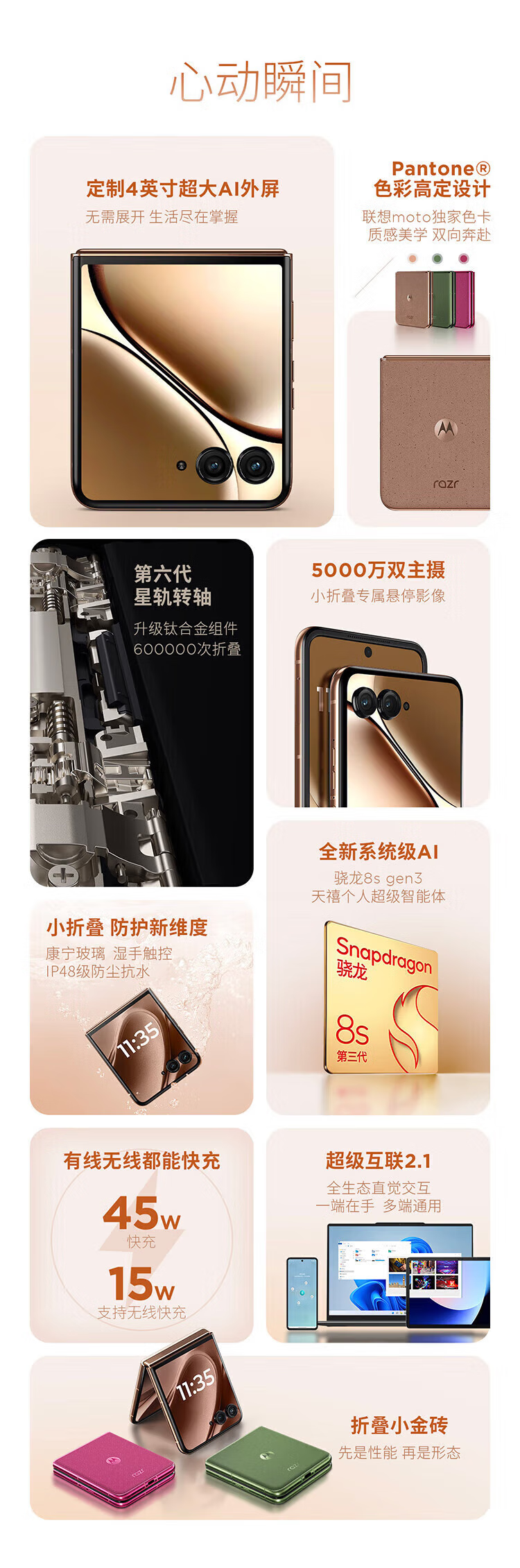 摩托罗拉moto razr 60 pro 4英寸AI大外屏 5000万双主摄 第六代折叠屏 哥特玫瑰 12GB+256GB 官方标配