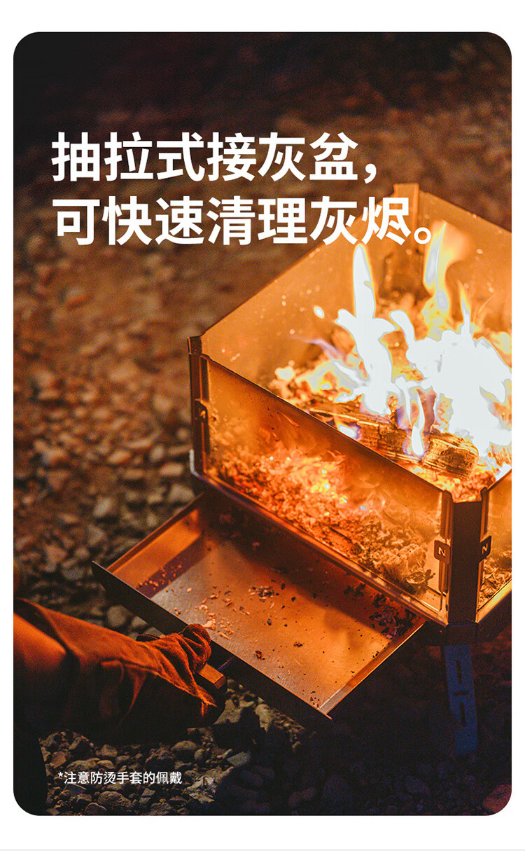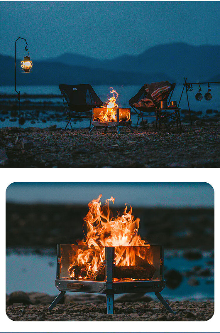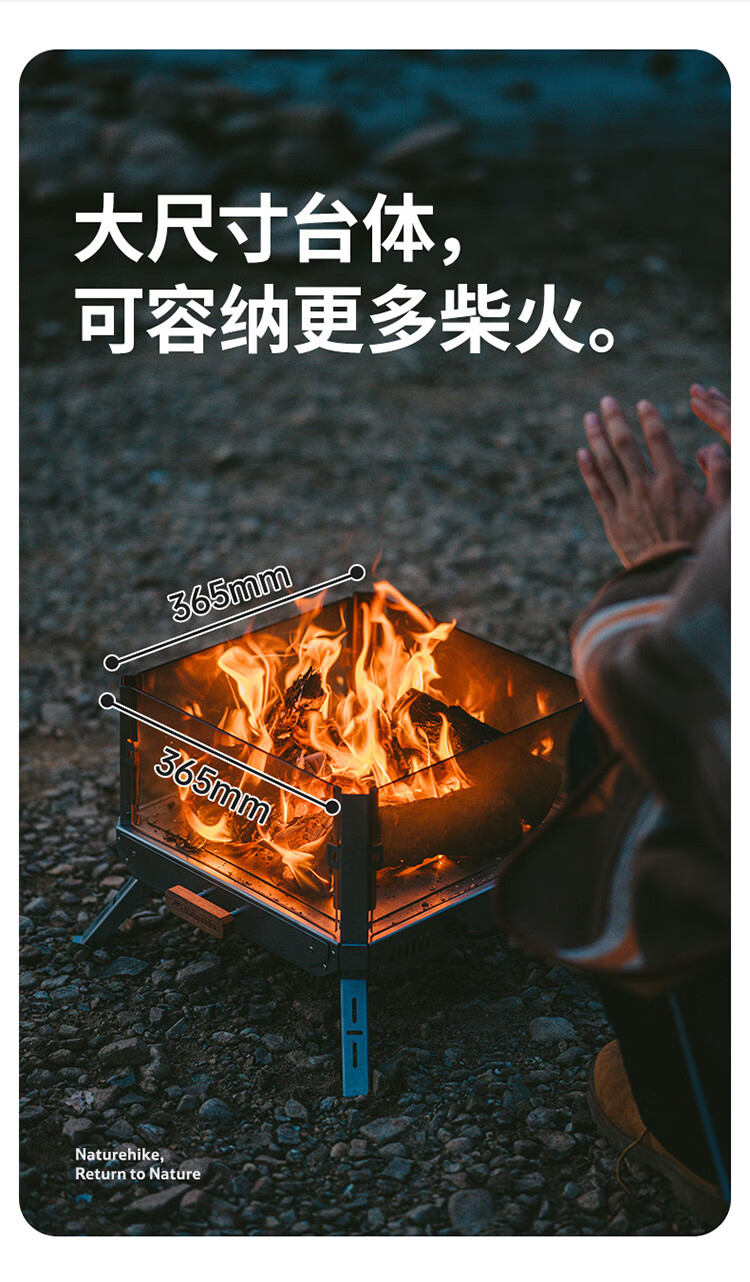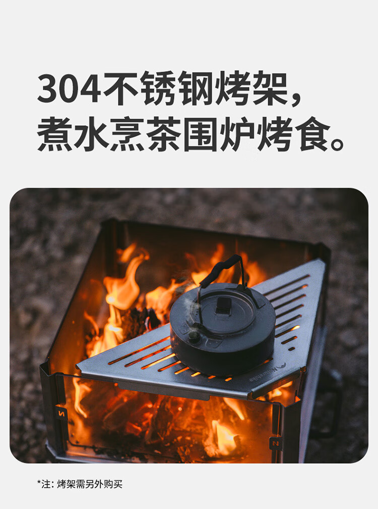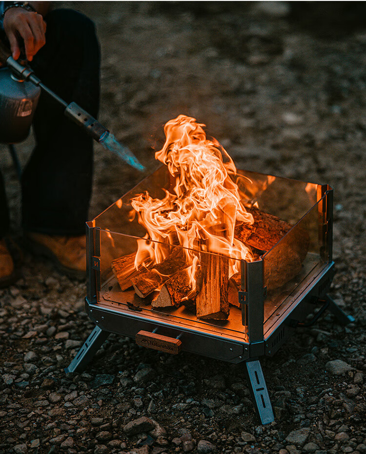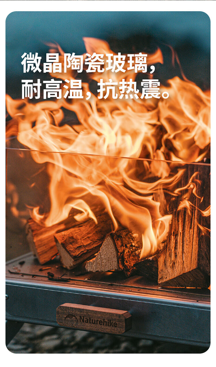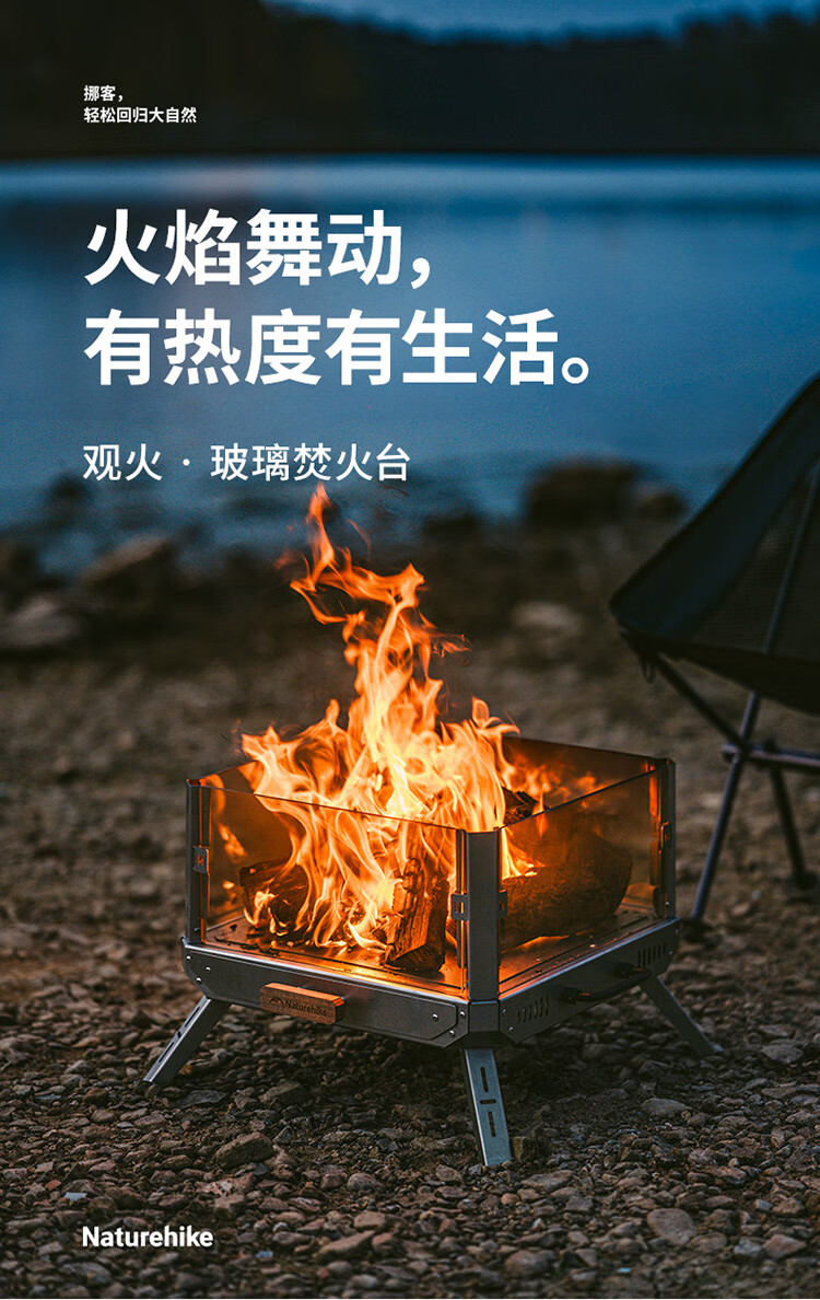 NatureHike挪客焚火台户外露营不锈钢烧火架子便携折叠篝火架围炉煮茶烤火 观火玻璃焚火台/不锈钢本色