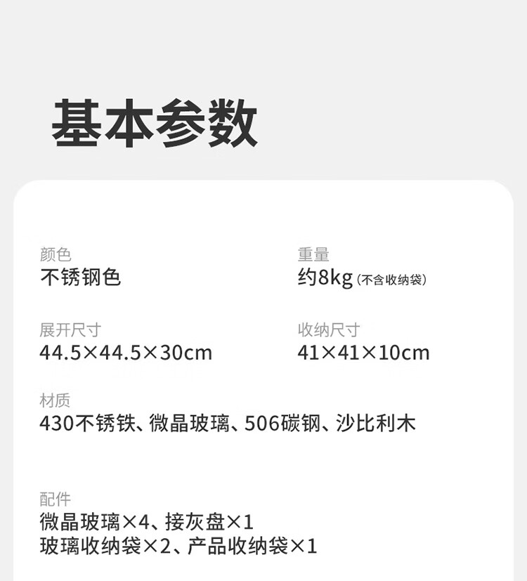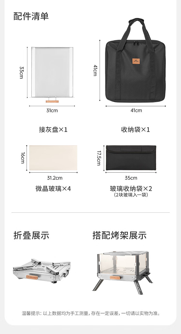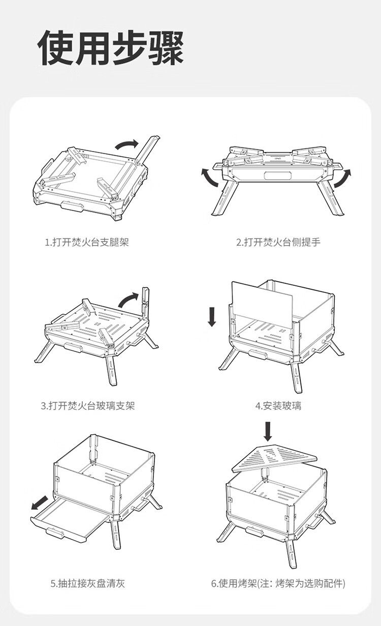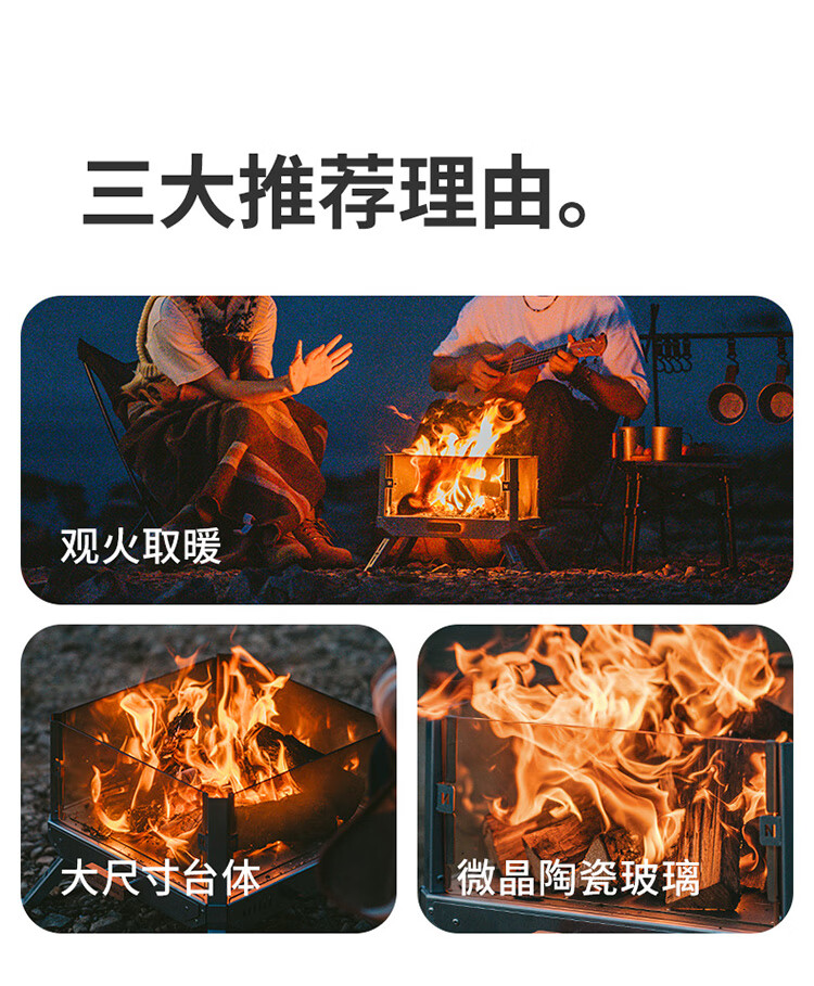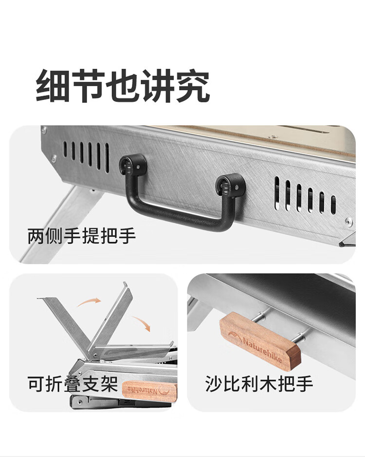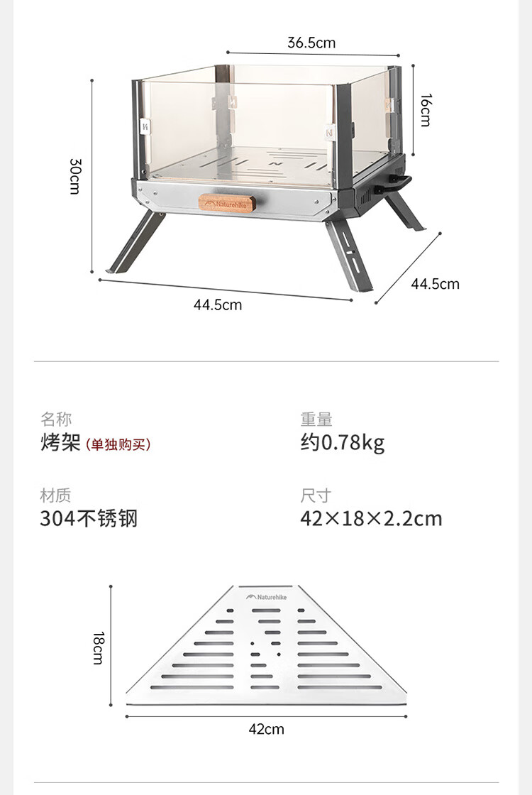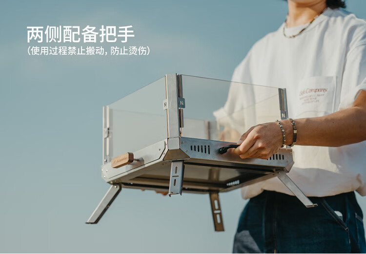 NatureHike挪客焚火台户外露营不锈钢烧火架子便携折叠篝火架围炉煮茶烤火 观火玻璃焚火台/不锈钢本色