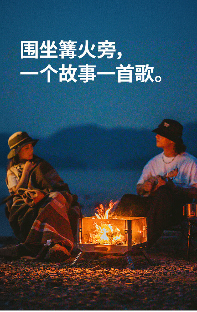 山之客(MOUNTHIKER) 焚火台 户外露营野营烧火架子便携可折叠不锈钢六角烧烤架 新款六角焚火炉