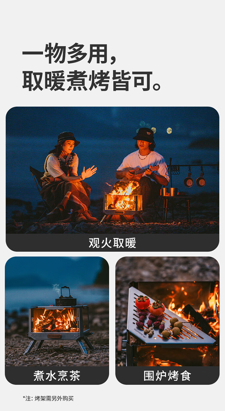 ANY CAMPING无界露营】户外野营0.5单元柴火炉IGT桌面取暖炉家用便携多功能炉 半单元柴火炉