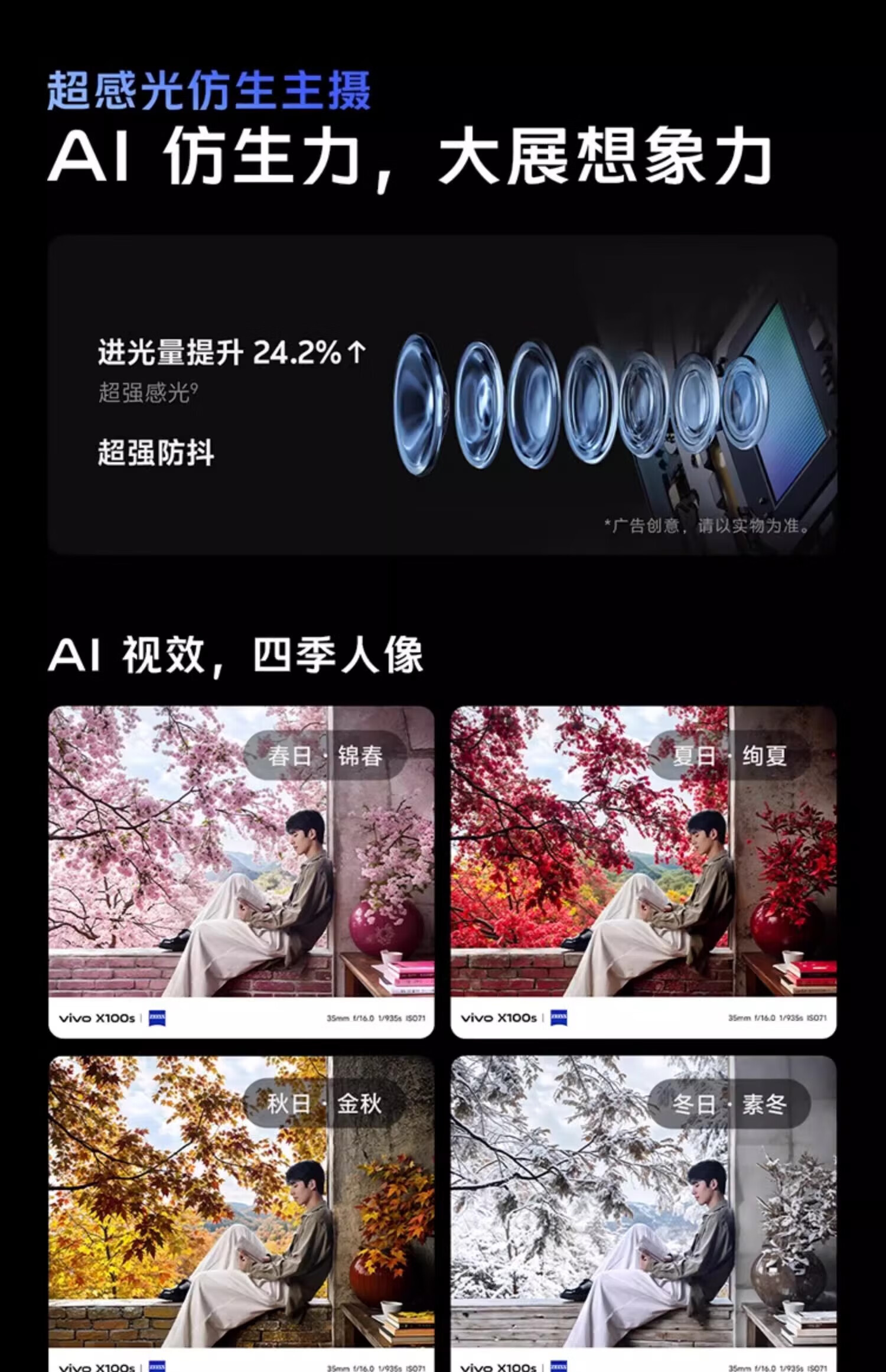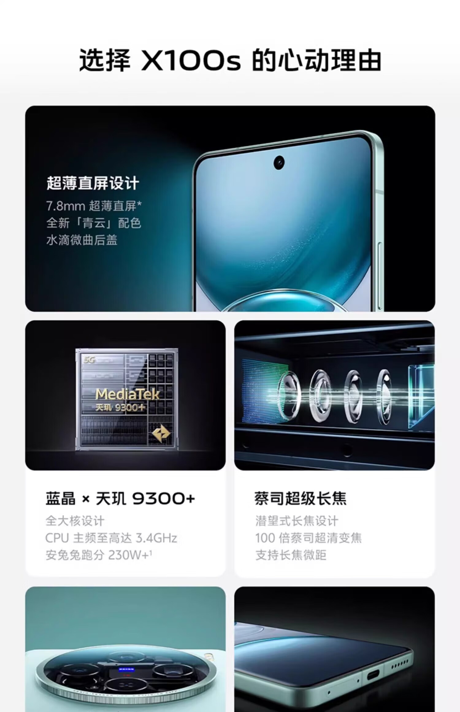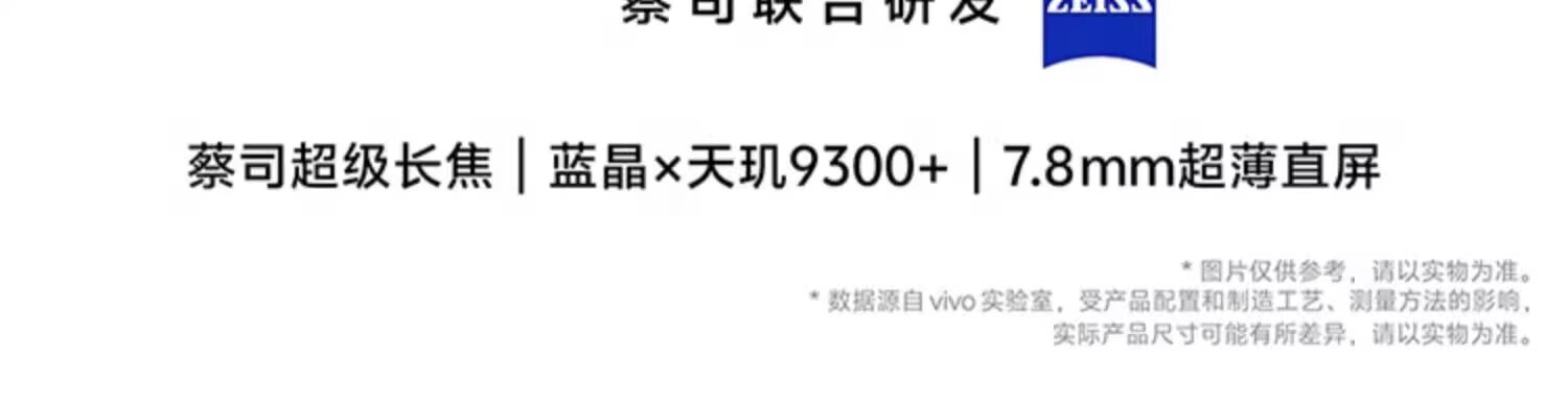vivox100s 超薄直屏旗舰 蓝晶天玑9300+ 蔡司长焦7.8mm 5G 拍照AI手机 白月光 12GB+256GB 单机+第三方品牌快充+全国联保