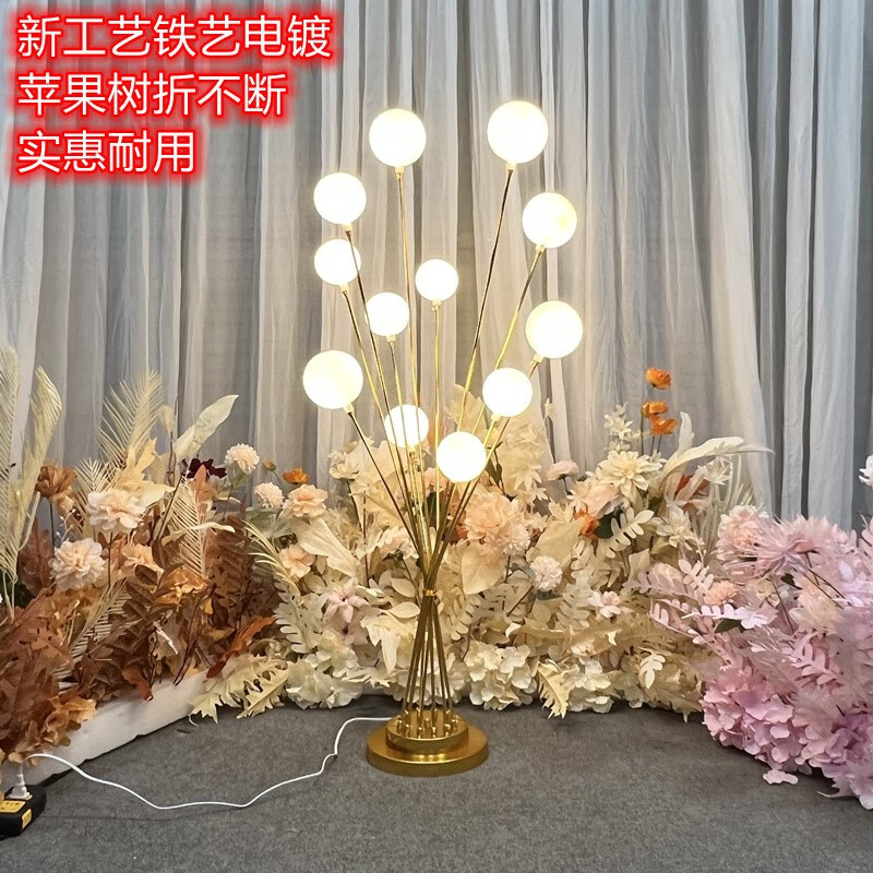 皇灯堡婚庆婚礼道具铁艺幸福果苹果树路引灯发光摆件装饰舞台布置金色 铁艺金色1.2米9头暖光不带配重2