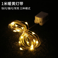 唄硶LED灯串灯带蛋糕装饰摆件小彩灯铜线树灯创意鲜花满天星花束插件 1米暖黄灯带 (快闪慢闪常亮 3种