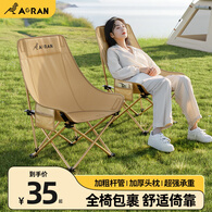 Aoran月亮椅户外折叠椅超轻便携式露营高背椅子钓鱼凳野餐躺椅沙滩椅 卡其-夹棉高靠背+加粗管 92cm高靠背+加粗钢管【高承重】