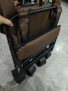 这是我买的第四个营地车,首先声明,我只是周末公园晒太阳,并不是重度露营者,但是还是本着精打细算,考虑再三,买了这款。之前三款都退货了,有个支架太细,有个没有品牌合格证,有个虚标车架长宽高。最终选了这个品牌合格证,尺寸都标注清楚,车架也厚实。