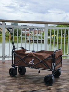 Aoran露营推车可折叠户外手推野餐车营地拖车拉杆车桌板野营 【咖色150L】5寸平地窄轮