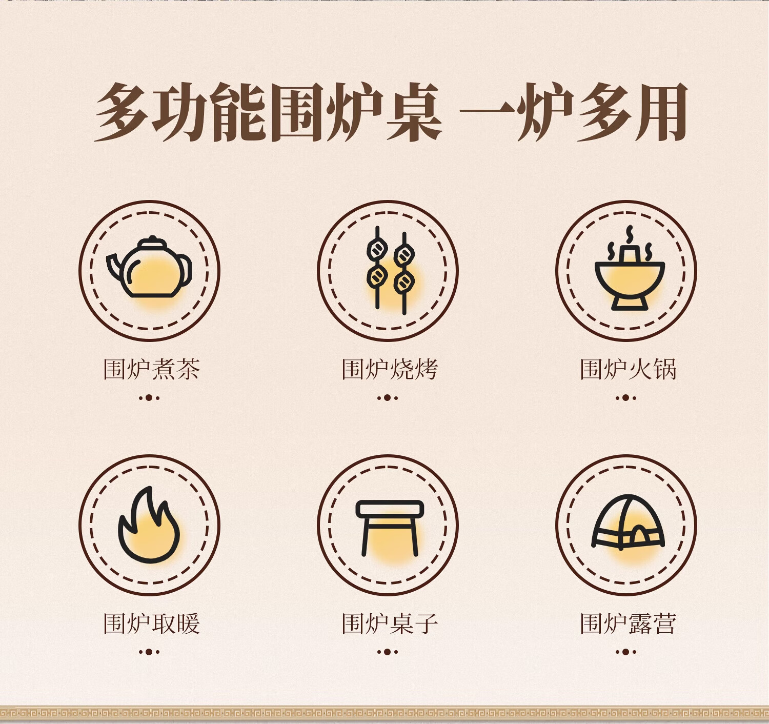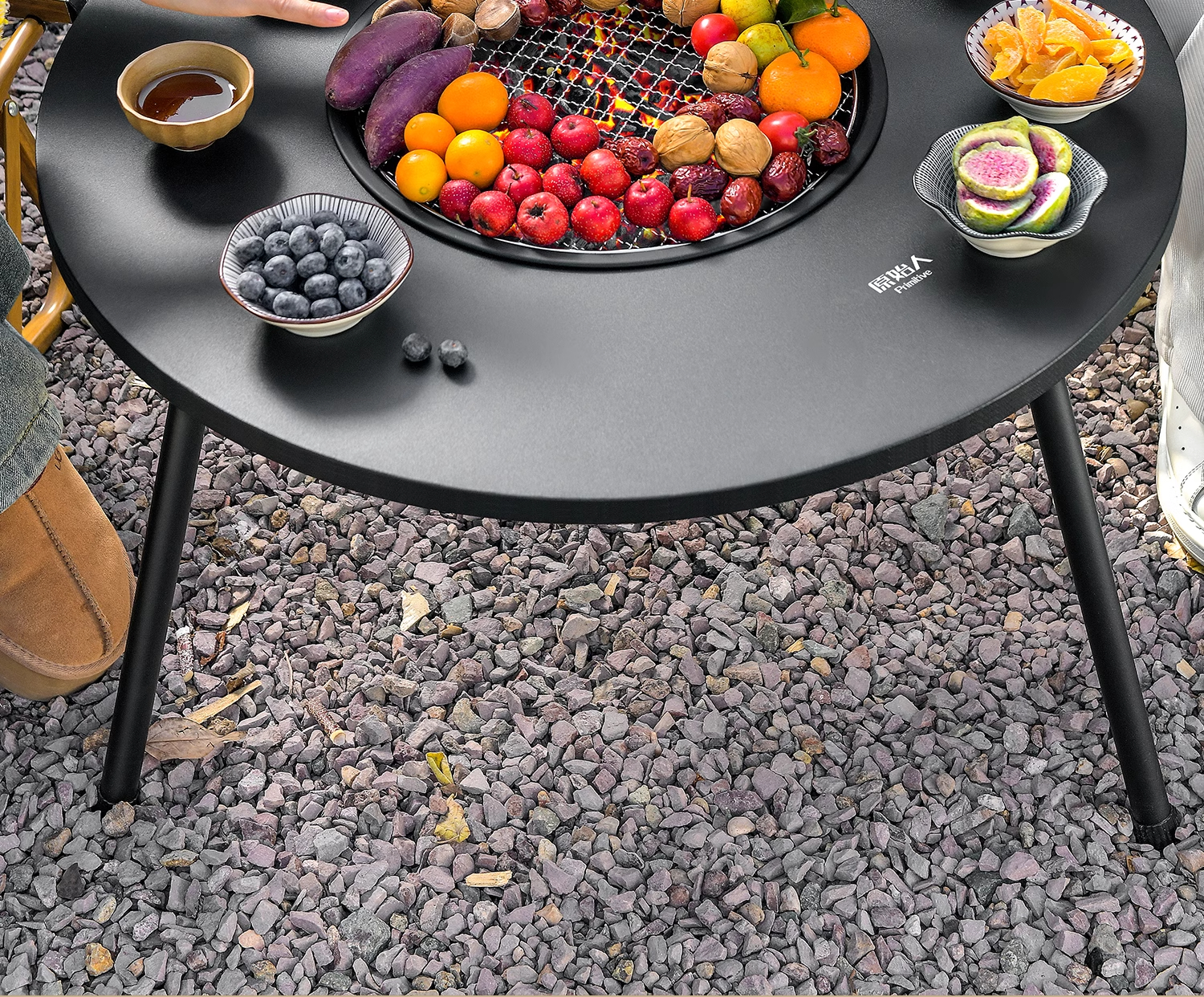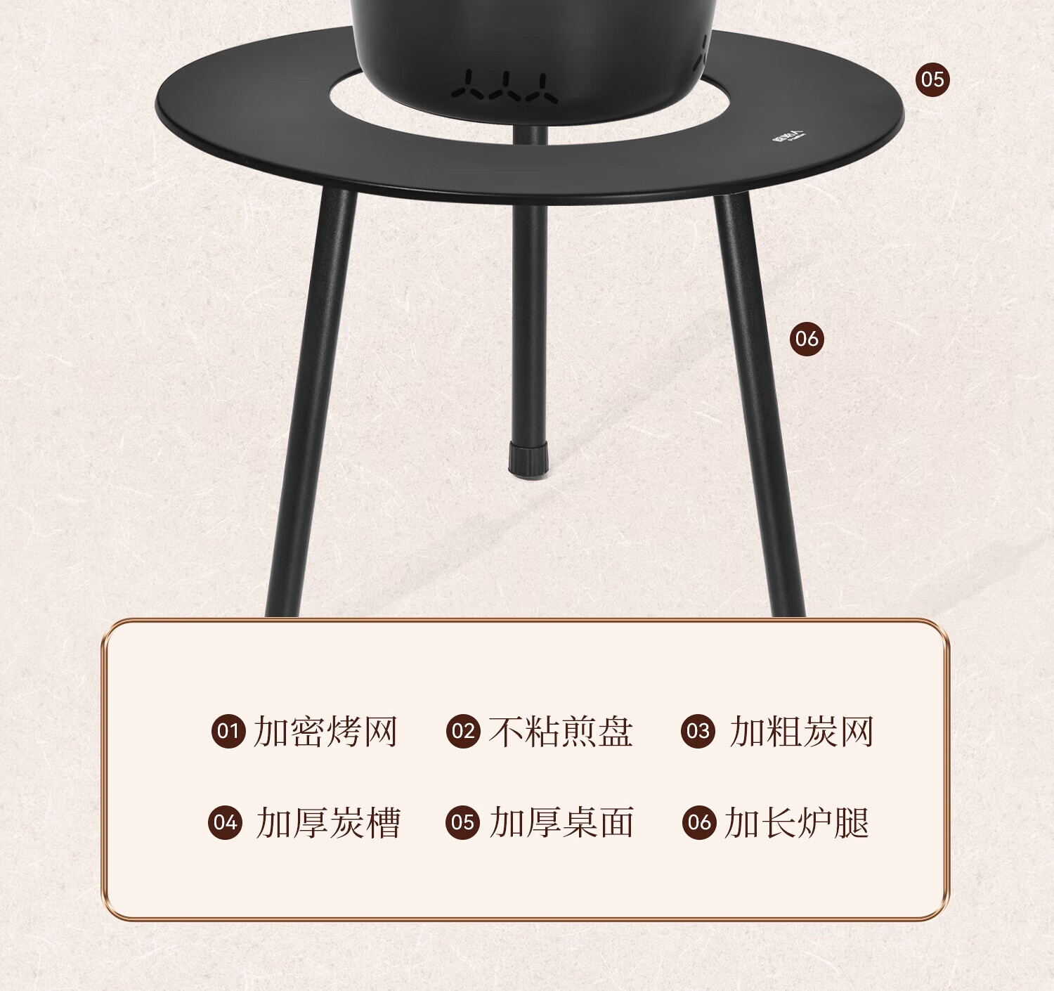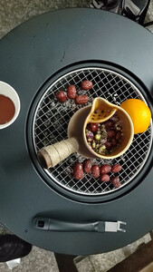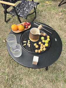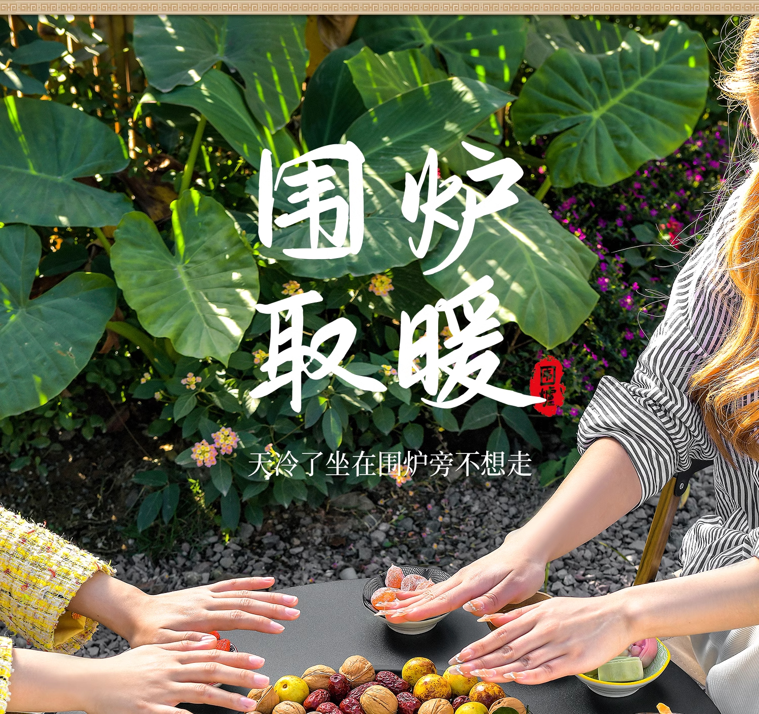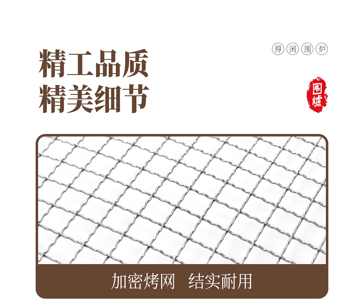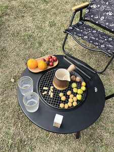 围炉煮茶氛围很好,也可以用来烧烤,下面还有很多个通风口,火力嘎嘎旺。这个方格烤网我也很喜欢,围炉煮茶的时候,放点小花生也不会掉下去很棒,煮茶很香烤水果也很 nice 解锁暖冬。