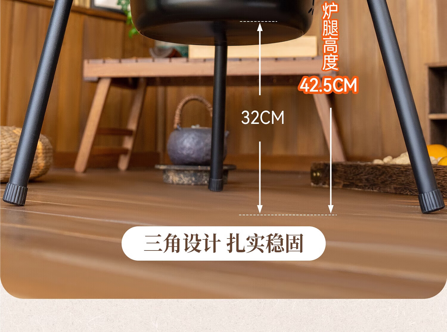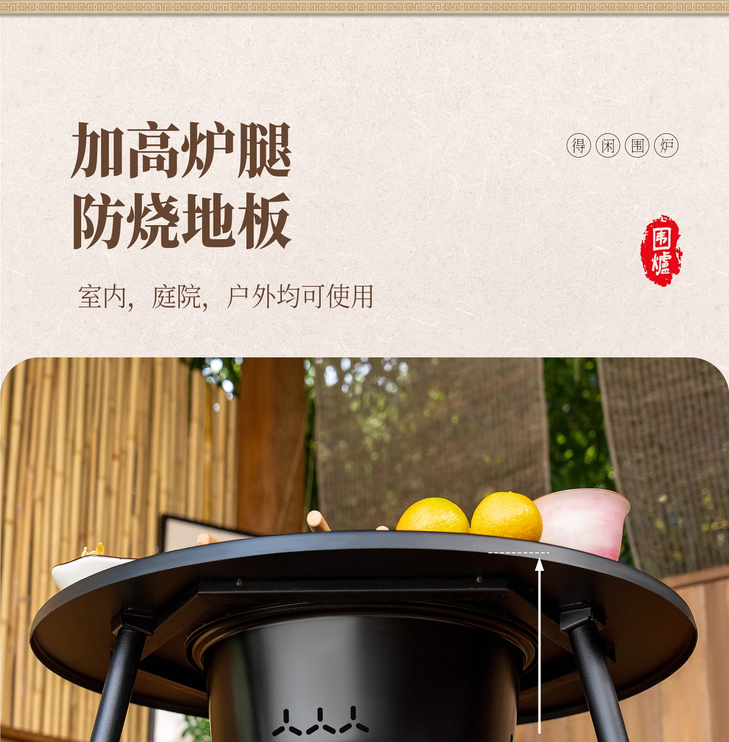 北极狼围炉煮茶家用庭院室内烤火盆煮茶烧水冬季户外露营烧烤取暖 59cm围炉5斤碳5件套