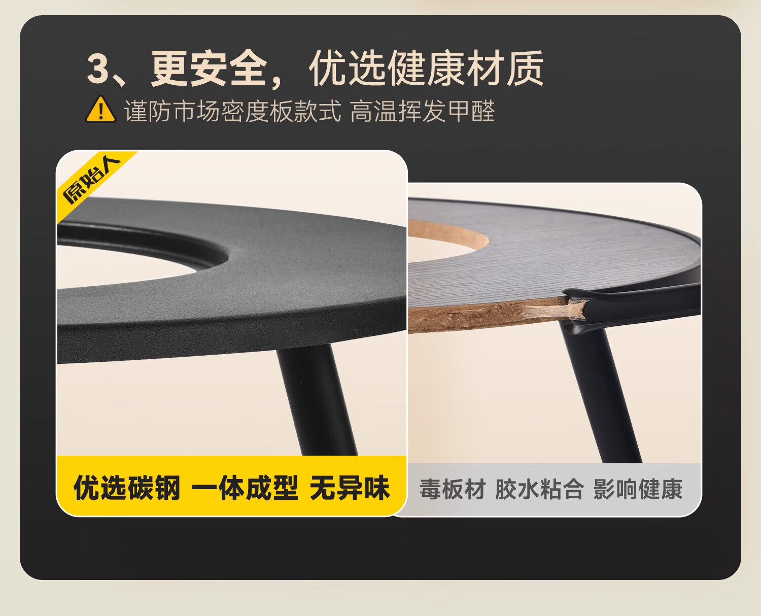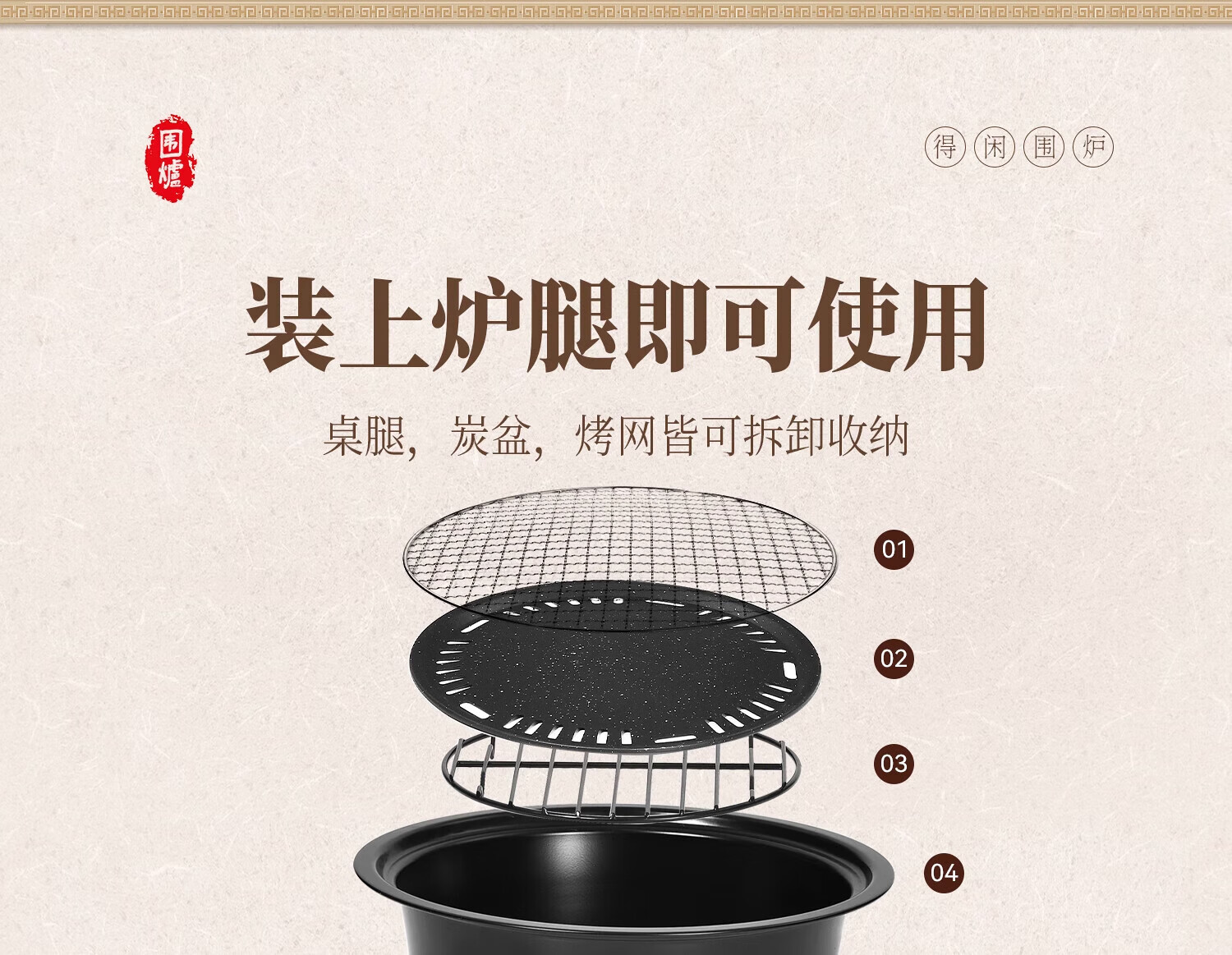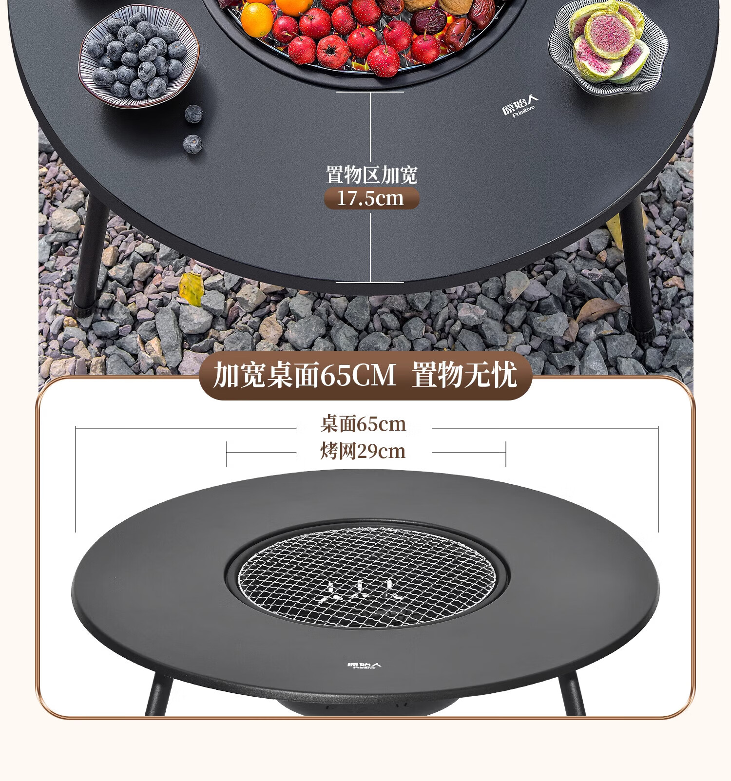 原始人围炉煮茶烧烤炉家用室内烤火炉套装户外烧烤桌取暖盆木炭烧烤架 80cm大桌围炉+煎盘+收纳包+盖板