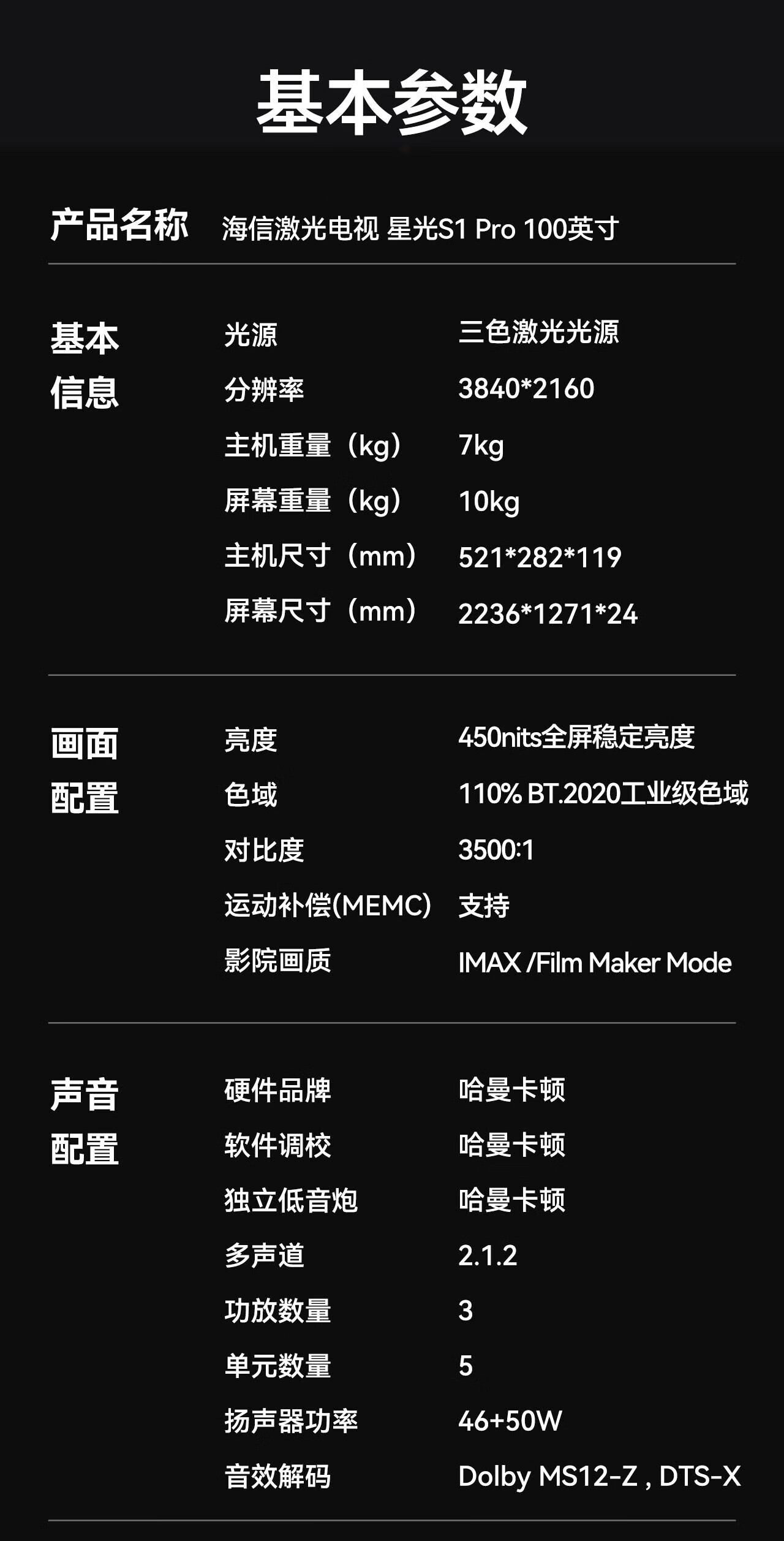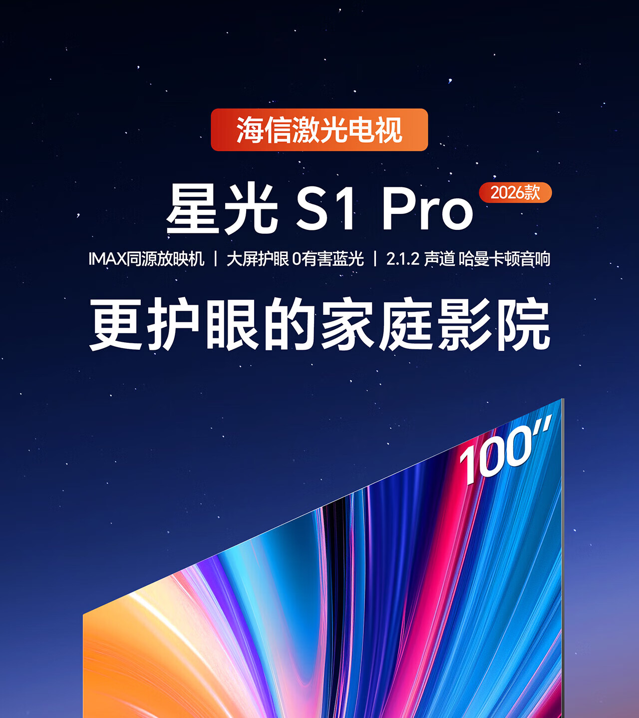 海信璀璨星光S1Pro 2026款 100英寸激光投影电视全色投影家庭影院 星光S1PRO(100英寸)