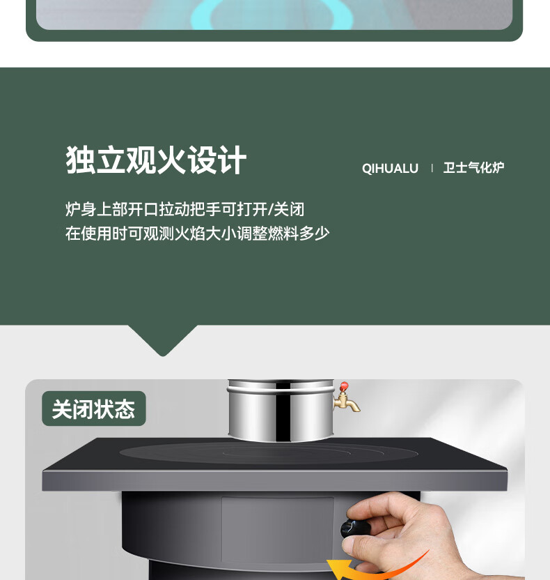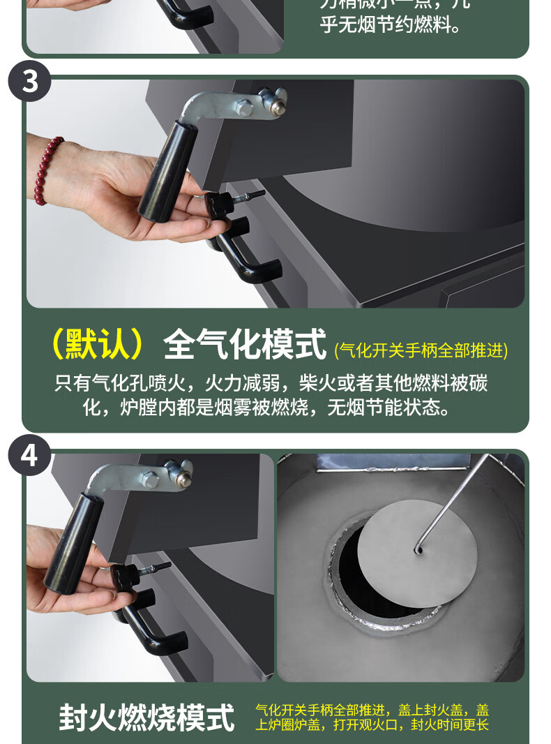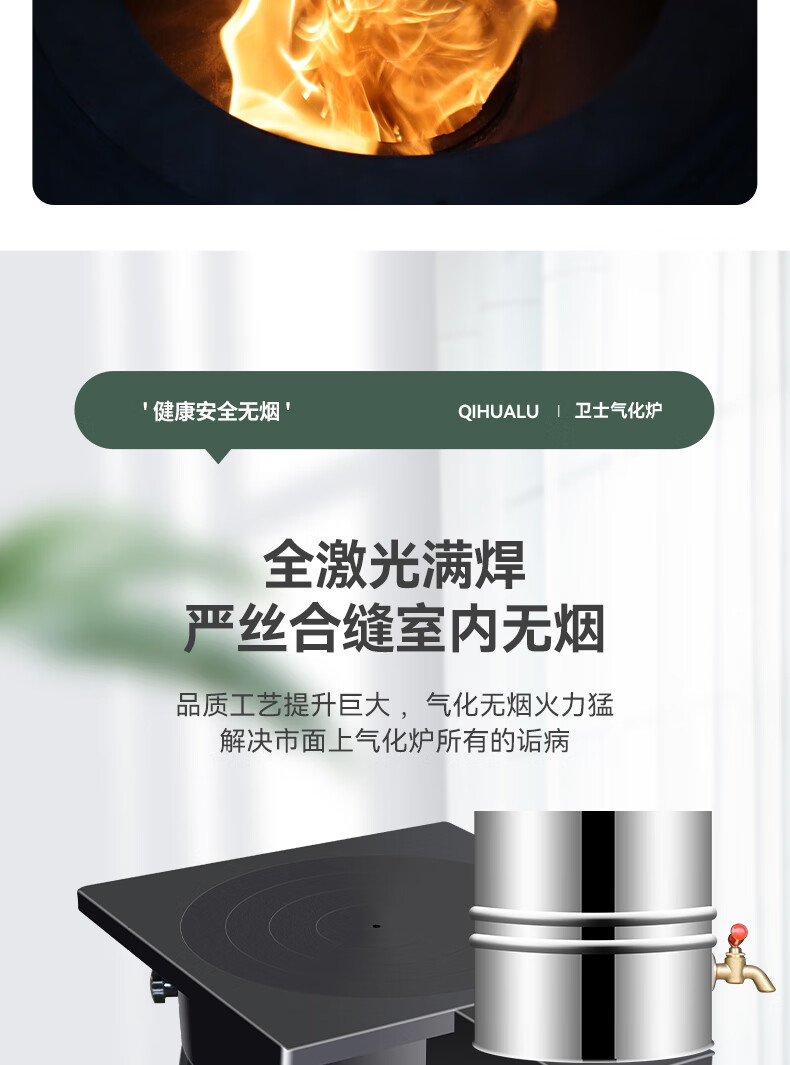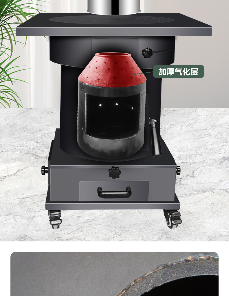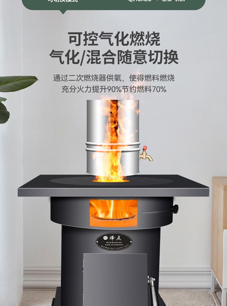 新式农村气化炉柴火做饭取暖家用节能无烟环保室内室外烧煤两用 自吸式无烟气化炉