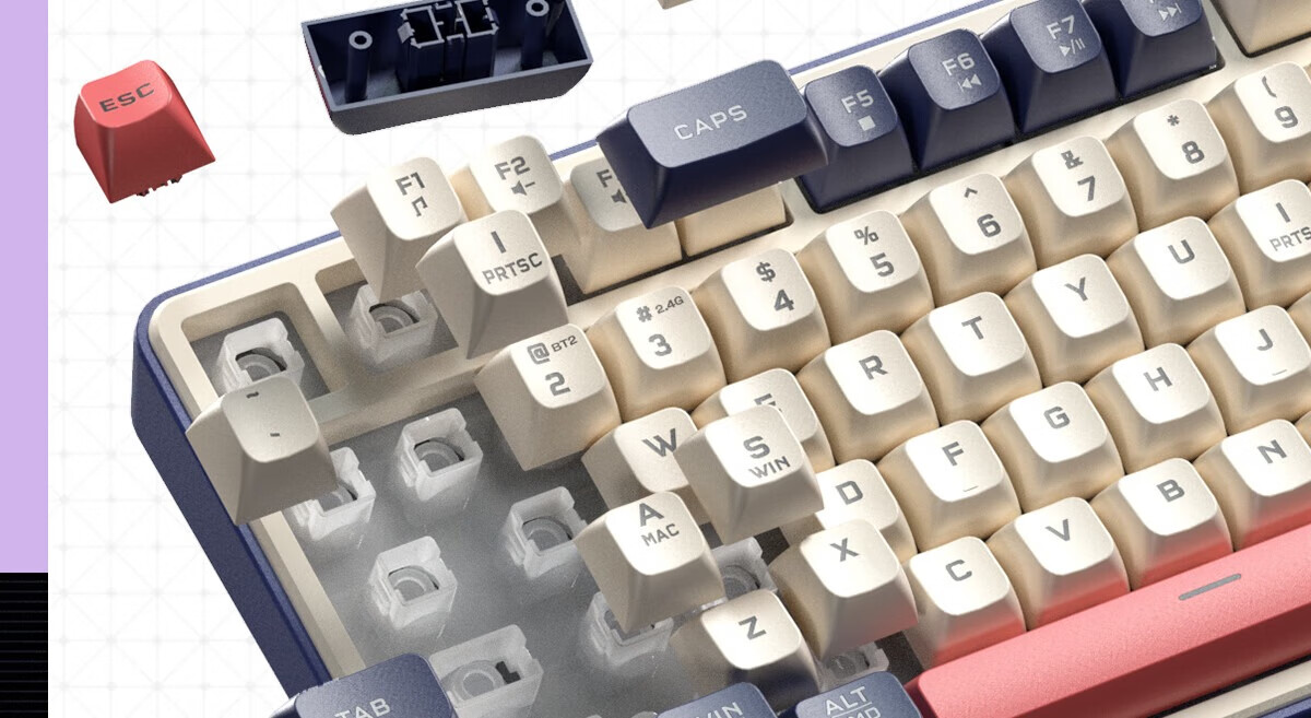 狼蛛S3187无线蓝牙有线三模键盘真机械手感键盘 RGB灯效 多功能旋钮 gasket结构f办公游戏电脑键鼠套装 烟雨蓝【三模/RGB】