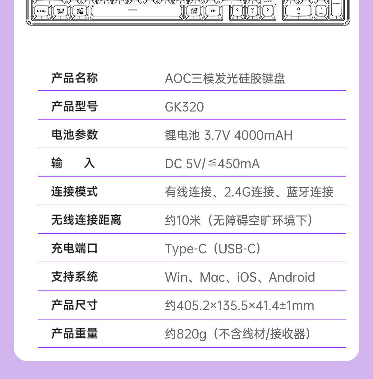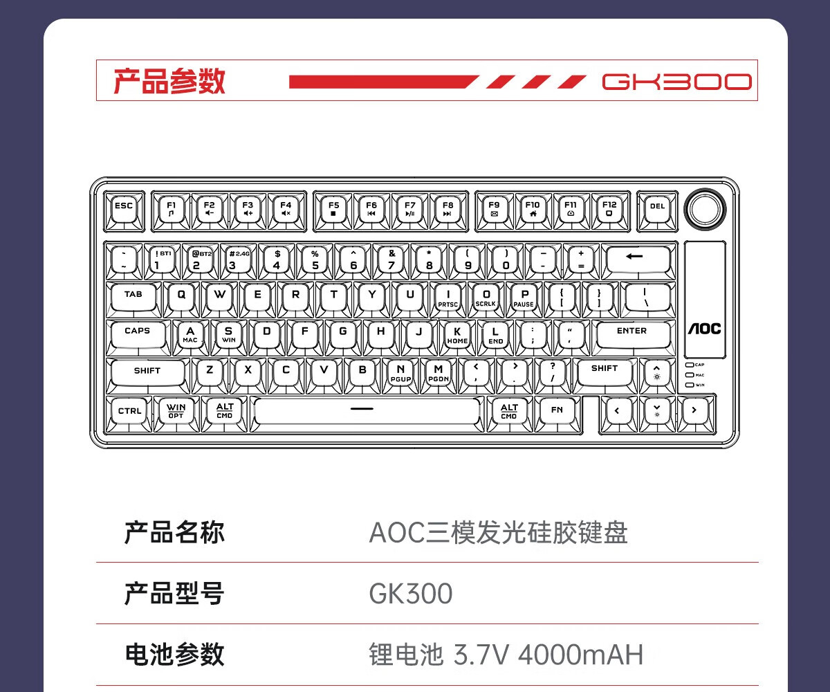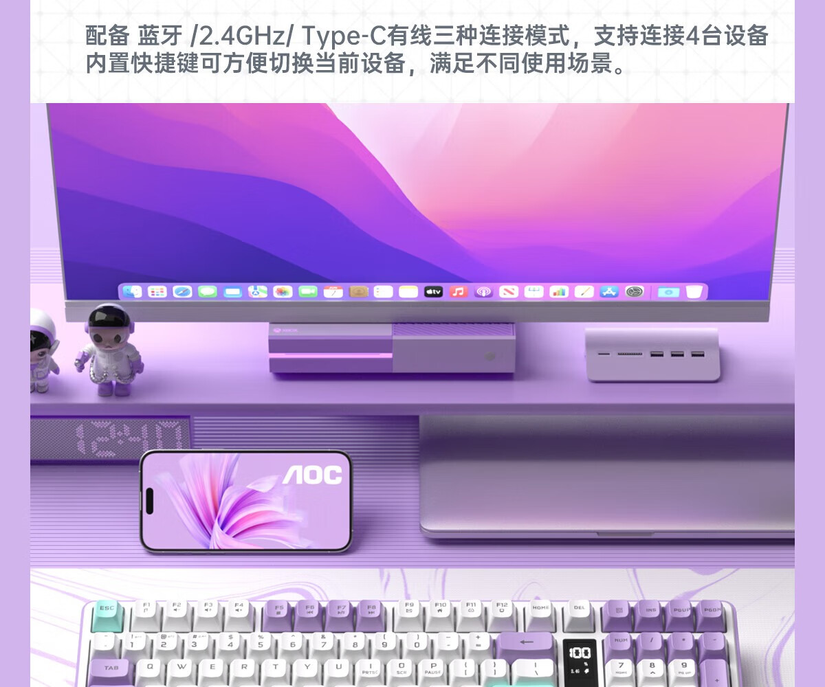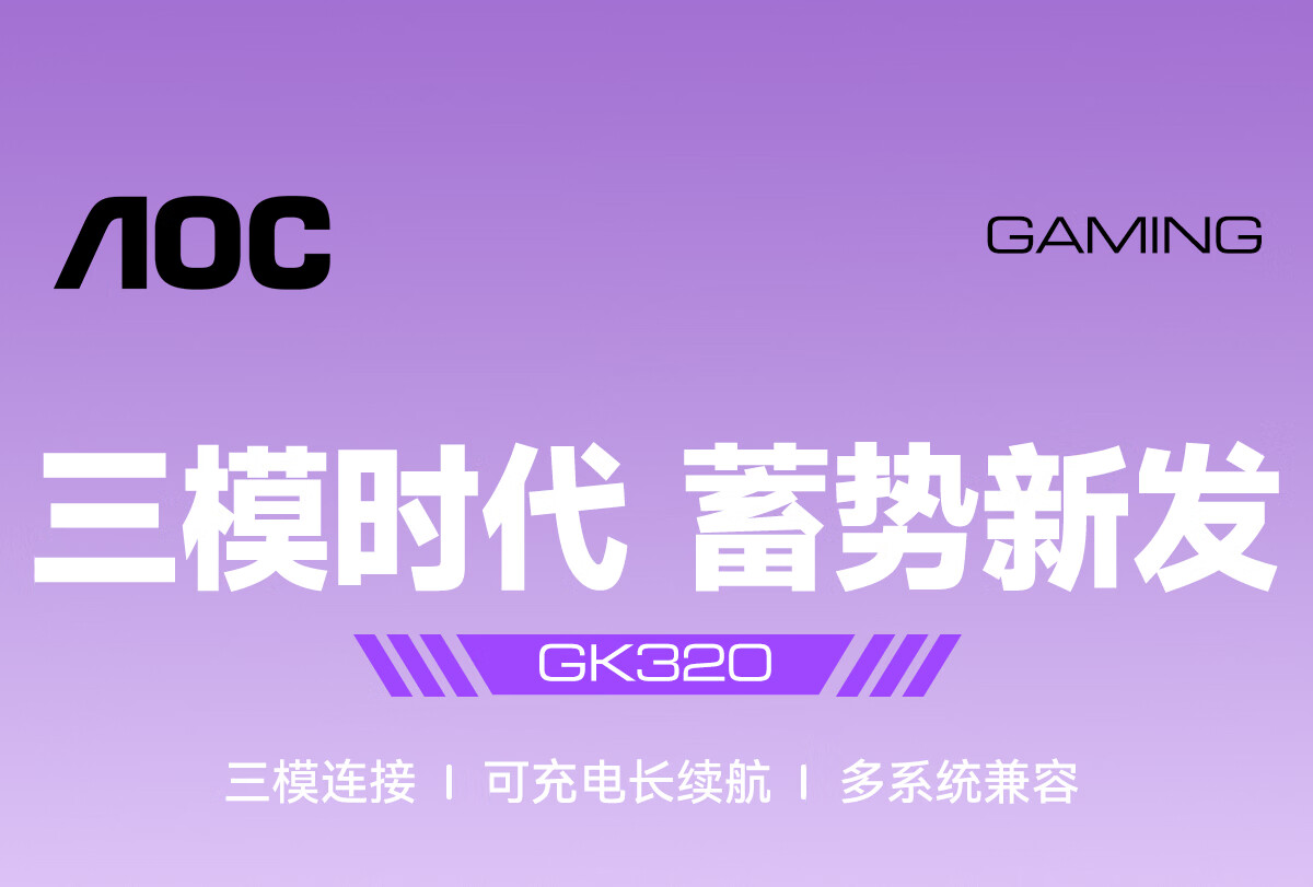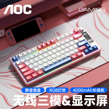 AOCGK210/220有线/蓝牙/无线三模键盘/鼠标/耳机套装 机械手感 游戏办公笔记本电脑外设 【粉霞紫】GK220 -2.4G/蓝牙/有线
