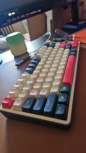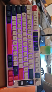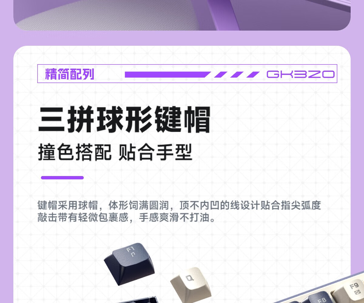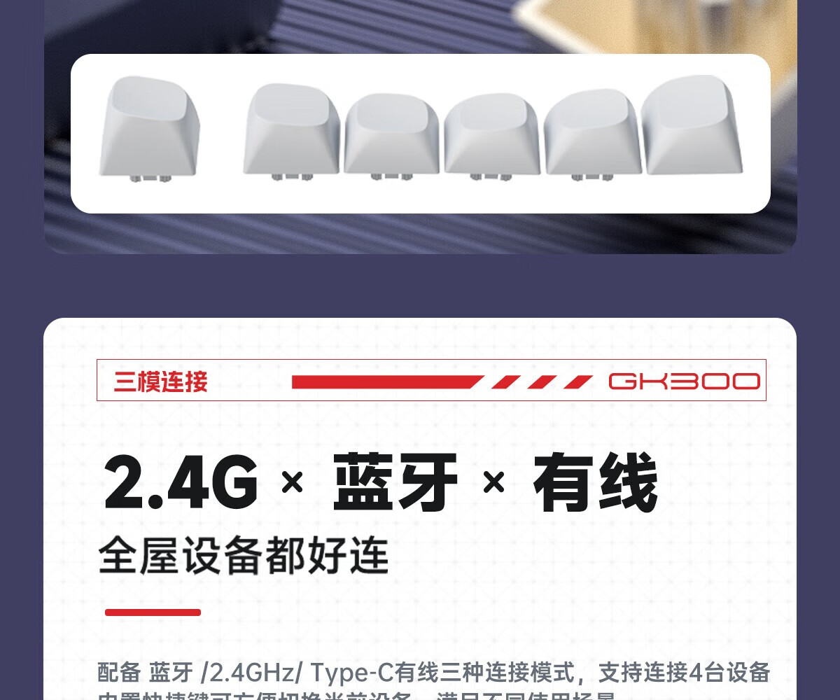 舒适度:声音是低调静音的闷感,是我现阶段比较喜欢的,因为上一把键盘是脆感明显,部分情况不合适,所以这个声音也契合, 外观颜值:炫酷的3拼色外观,然后价位也合适,点赞👍, 响应速度:连接的2.4G,吃鸡联盟感觉都ok的,很不错。