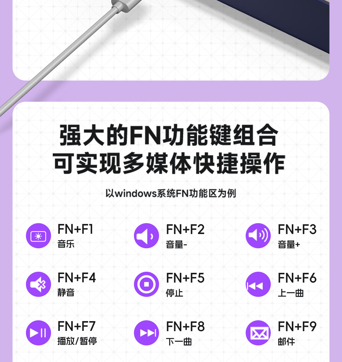 AOCGK168键盘 87键 机械手感 轻音按键 有线键盘鼠标套装19键无冲电脑办公笔记本 87键【雨烟紫】