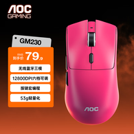 AOC GM230无线蓝牙三模鼠标 轻量化游戏电竞办公可充电鼠标便捷 支持驱动宏编程 笔记本电脑鼠标 玫红