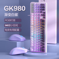 MageGee GK980 游戏办公键鼠套装 98键机械手感键盘 RGB背光渐变混搭 台式笔记本电脑键盘鼠标 渐变白紫