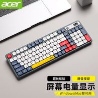 宏碁(acer)无线蓝牙双模键盘鼠标套装笔记本台式电脑用小键盘静轻音办公商务可充电长续航适用于Mac平板手机 蓝色-无线蓝牙双模+数显屏【键盘】+静音鼠标