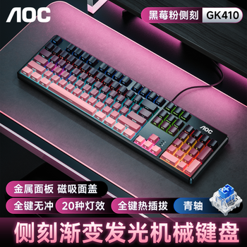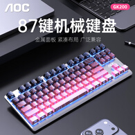 AOC GK200机械键盘 等高线侧刻有线电竞游戏键盘 热插拔 背光灯效87配列电脑办公全键无冲 黑莓粉青轴