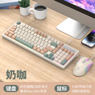 蝰蛇KM800机械手感游戏电竞键盘鼠标套装有线USB发光台式电脑笔记本家用办公LOL防水客制化 游戏键盘鼠标套装【奶咖色】
