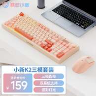 联想(Lenovo)K2_Pro三模键盘鼠标套装 无线蓝牙有线机械手感混彩灯效消音结构音量旋钮办公游戏电脑键鼠套装 粉