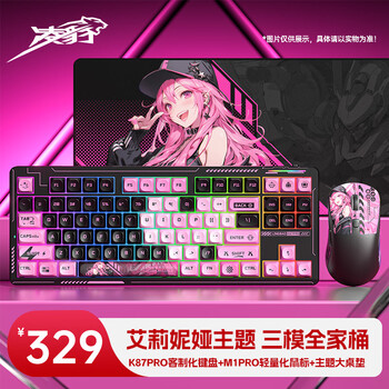 前行者(EWEADN)V96高颜值朋克渐变无线键盘键鼠套装真机械手感键鼠套装笔记本薄膜键盘 黑莓粉渐变无线键鼠套装