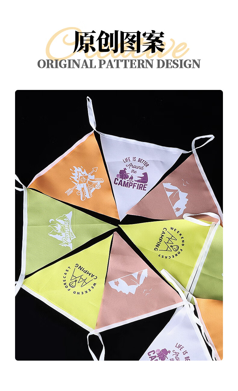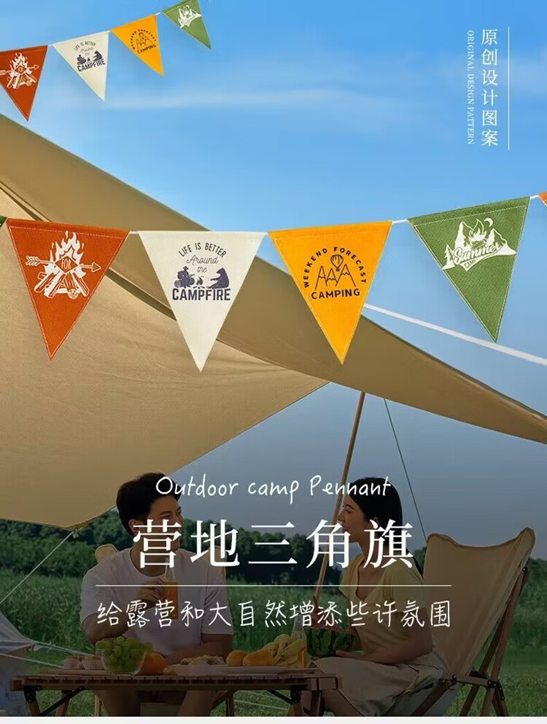 kommot牧彻露营三角旗户外野营营地氛围旗帜派对场地装饰配件露营氛围旗 4款【可备注自选颜色】