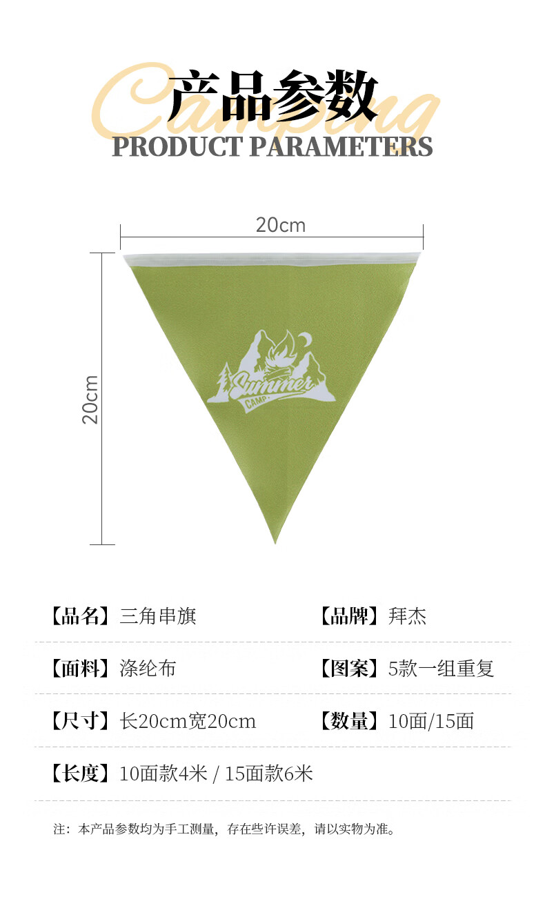 拜杰露营三角旗露营三角旗天幕帐篷氛围旗露营氛围布置旗野营装饰旗串 6米15面三角旗(涤纶布)