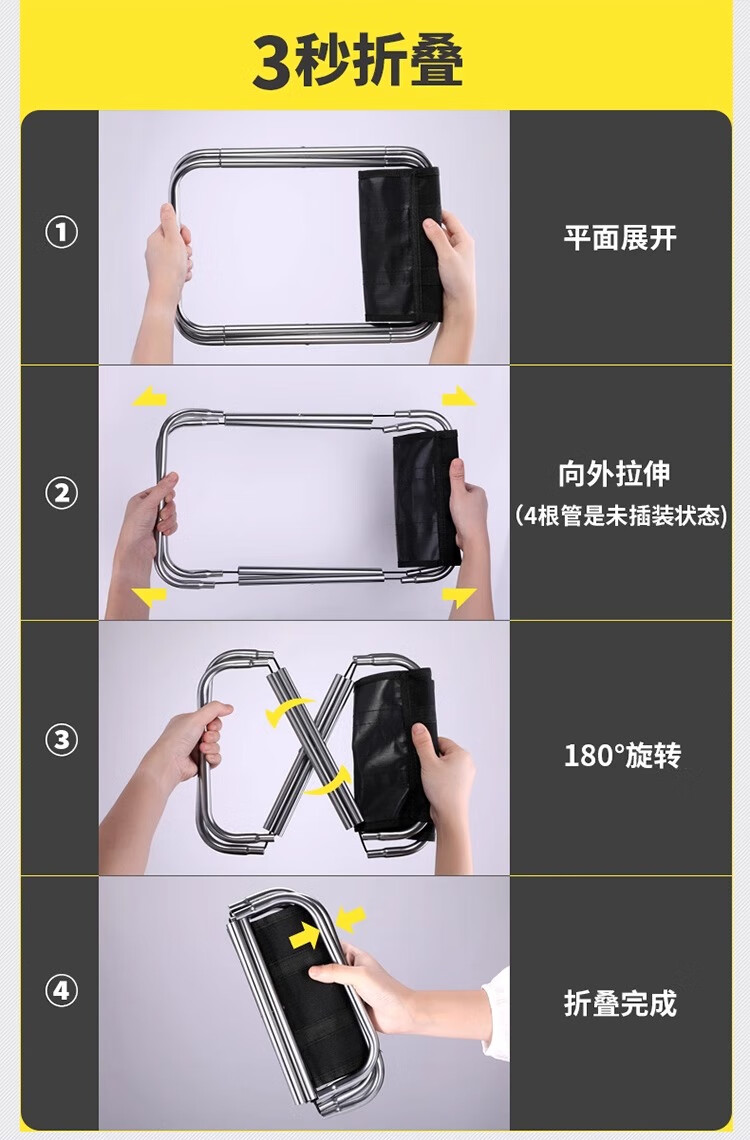收起来比手掌大一点,非常的轻巧,很适合放在包包里,户外携带,打开凳子也不大,体重大的人可能不太适合,嗯,凳子面积比较小,坐上去还是挺稳的