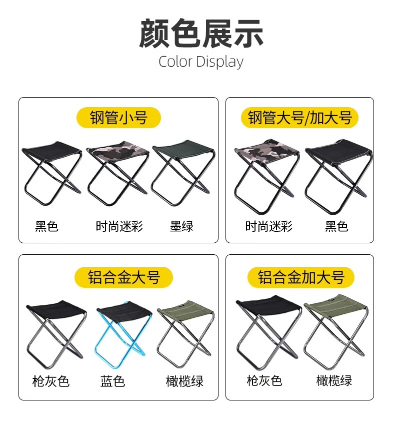 原始人 户外折叠椅便携式小马扎凳子露营钓鱼椅子折叠凳火车排队小板凳 橄榄绿全折款(铝合金大号)