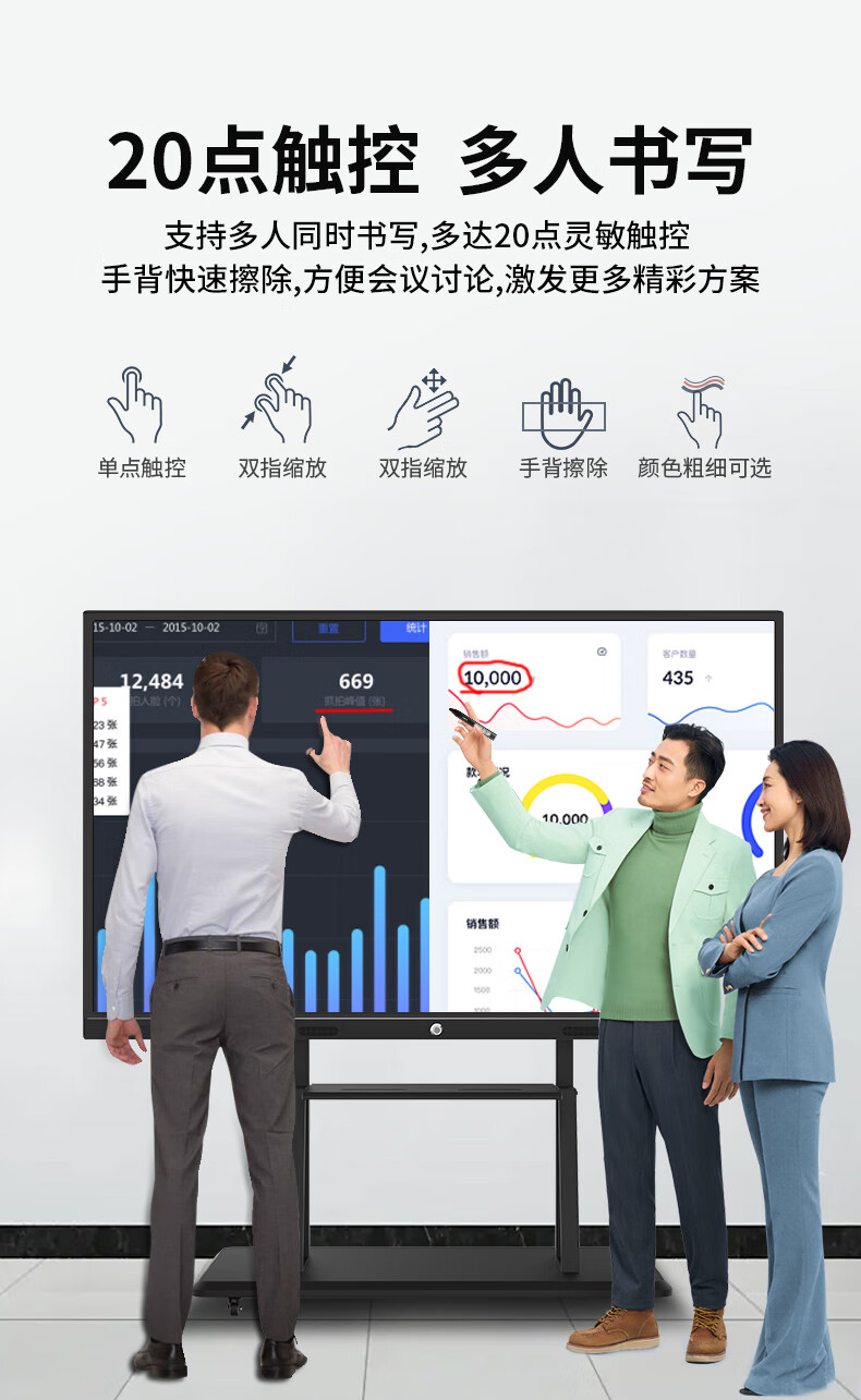 万宝wanbao纳米智慧黑板多媒体教学机一体机 会议平板 大中小学教育智能教室书写白板多功能触控大屏 65英寸J188-10代i5+8G+512G