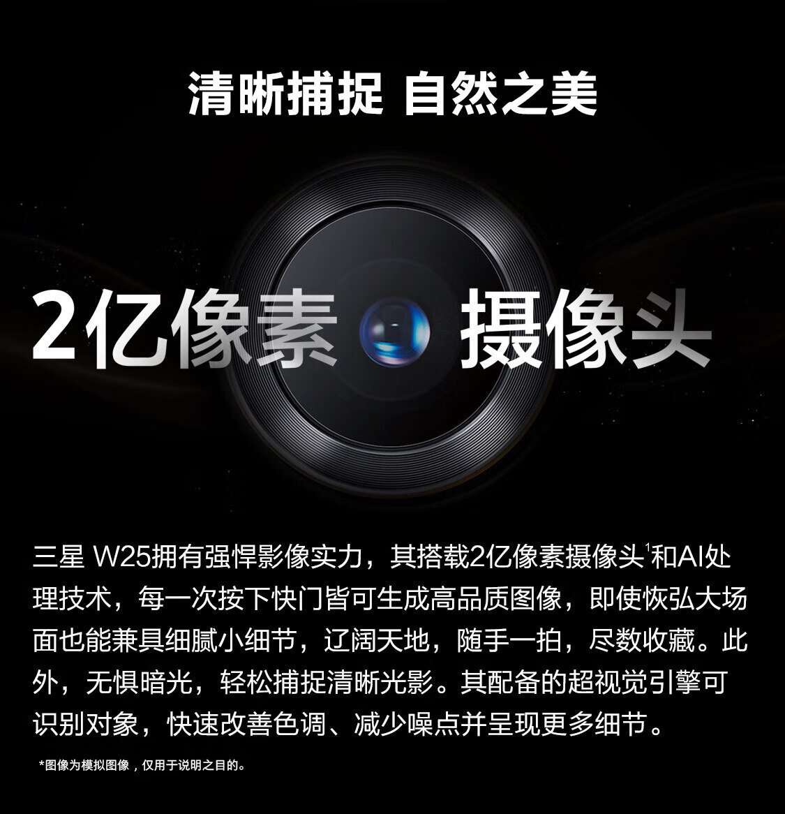 三星(SAMSUNG)心系天下 W25分期免息白条可选 AI手机 超大屏超轻薄 2亿像素 新一代Bixby 折叠屏手机 16GB+512GB 陶瓷黑 全款