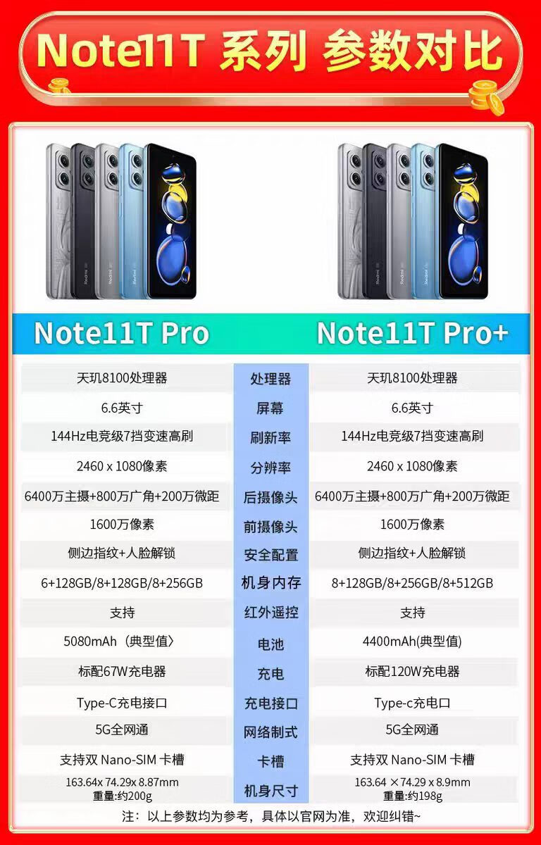 小米红米Note11TPro通5G天玑8100处理器144HZ便宜智能手机 时光蓝 官方标配8GB+512GB