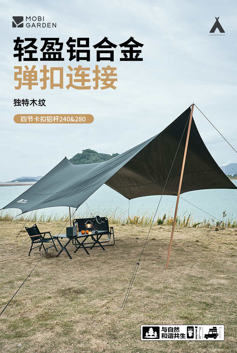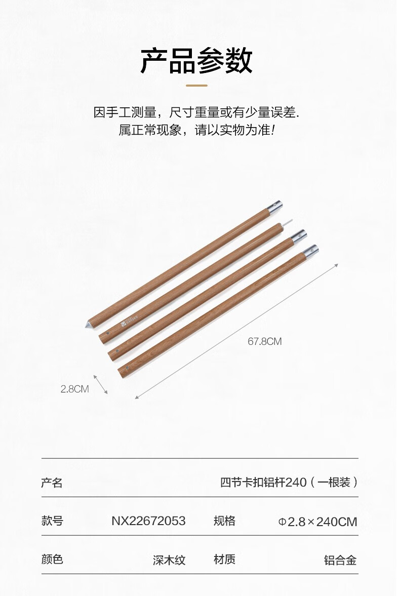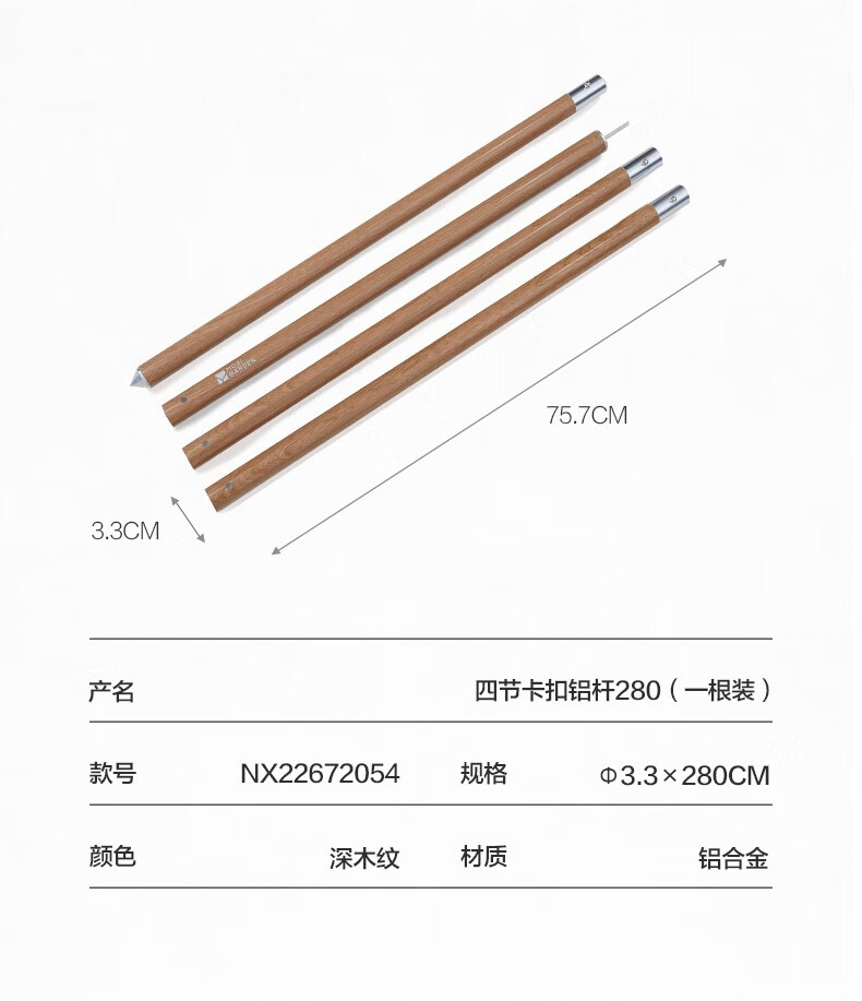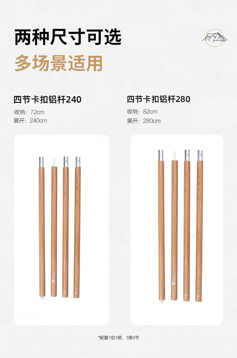 牧高笛(MOBIGARDEN) 支撑杆 户外露营四节卡扣式天幕杆前厅铝合金木纹支撑杆 木纹铝杆240(1根装/不含天幕)