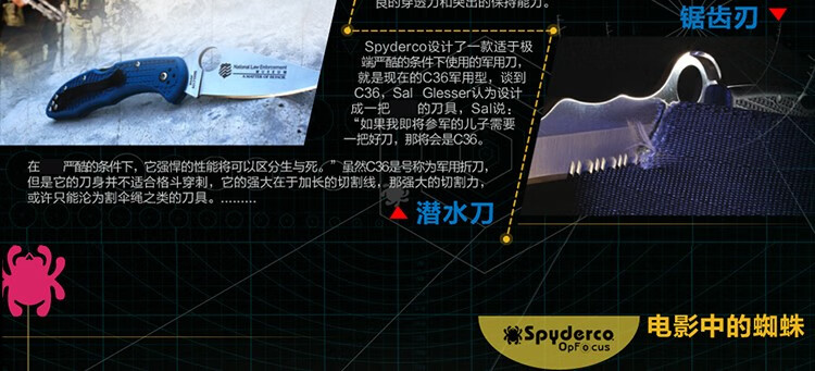 雨轩户外美国 SPYDERCO蜘蛛户外装备野营工具G10柄LC200N刃便携FB43GP直刀