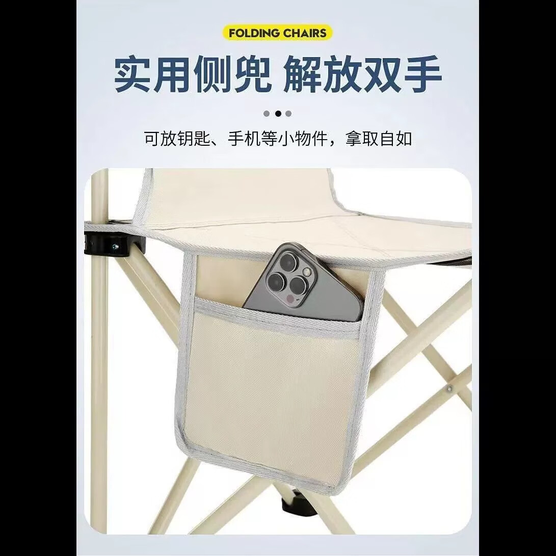 这款椅子真的很实用,侧兜设计太方便了,随手放手机和水杯都不怕掉。收起来不占地方,带出去露营超轻松。坐感舒服,支撑力不错,长时间坐着也不累。性价比高。