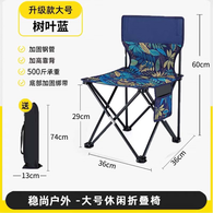 户外折叠椅子便携式马扎靠背露营装备钓鱼凳子美术写生 树叶蓝色*【全球热销999+】大号+收纳袋