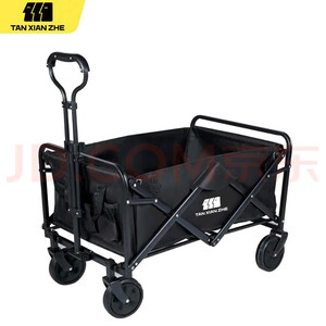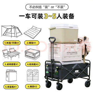 探险者(TAN XIAN ZHE)露营车儿童可躺户外露营推车营地车野营车可折叠桌板野餐车买菜车 曜石黑【静音万向轮+全钢车架】