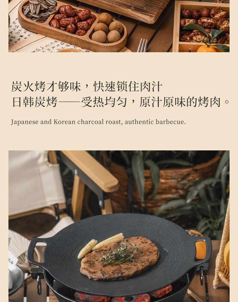 这个黑炉做工还是不错的,表面处理得比较好,🧐没有毛糙的现象;而且拿起来沉甸甸的,有种厚重感;烤网也是加粗的,看起来很结实;两侧有把手环扣,炭槽分离,细节到位,质量很好,颜值也好看,👌🆗觉得很nice!