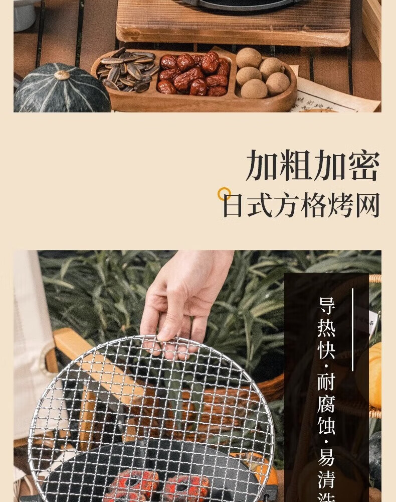 拿在手上沉甸甸的很结实!在户外煮茶用这个就好了不必买太大的,刚摆好 质量确实不错,感觉正常使用不会坏的,烤网很结实。而且室内室外都🉑以用,终于能实现烧烤自由了,不错不错,挺喜欢的!
