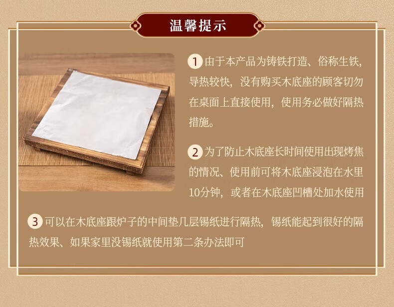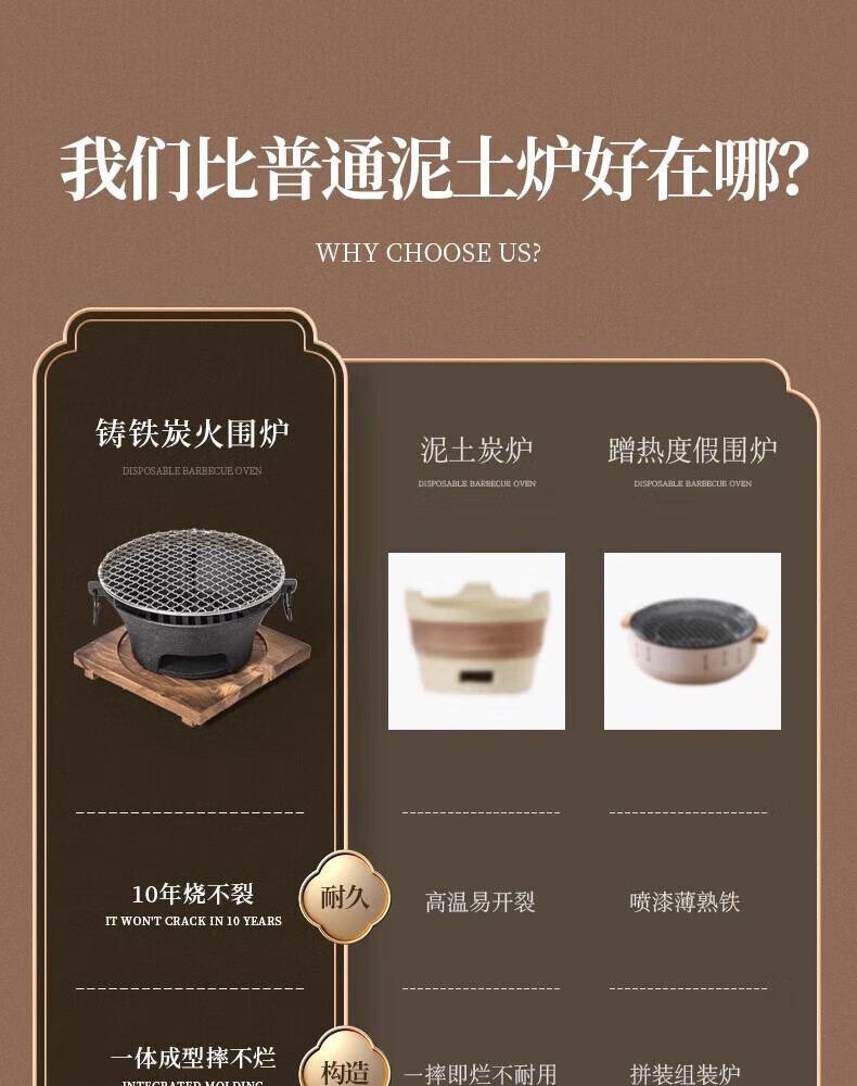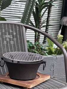 烤网和炉子搭配不错,质量不错感觉可以用很久。客服服务态度也很好,不懂的问题很有耐心的回答,而且还帮我加急发货了,这个铸铁烧烤炉份量蛮重的,看着就很敦实,很适合煮茶使用。